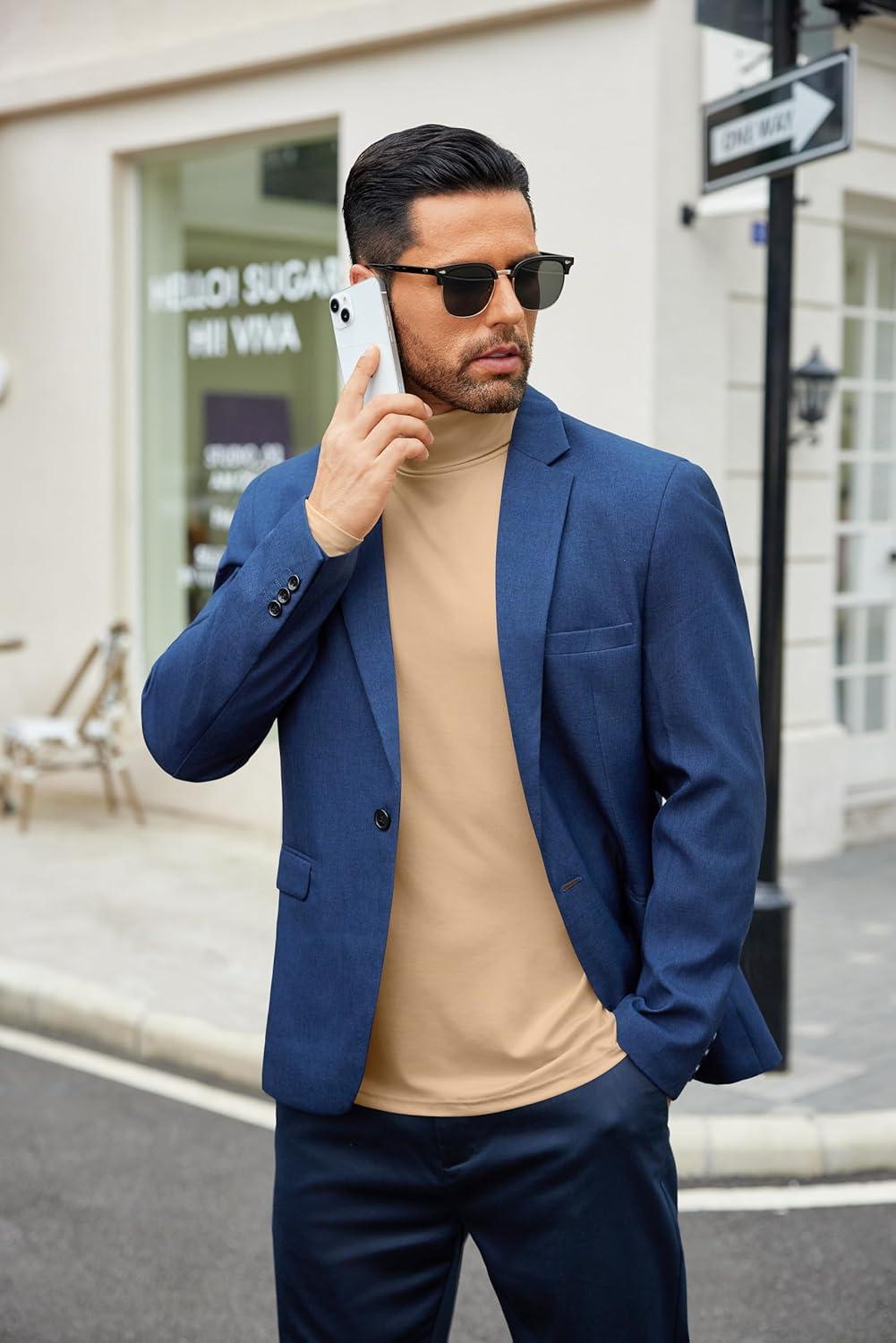 COOFANDY Men’s Slim Fit Basic Turtleneck T-Shirt Long Sleeve Solid T Shirts Casual Knit Pullover Thermal Tops(1 Pack- Navy Blue)