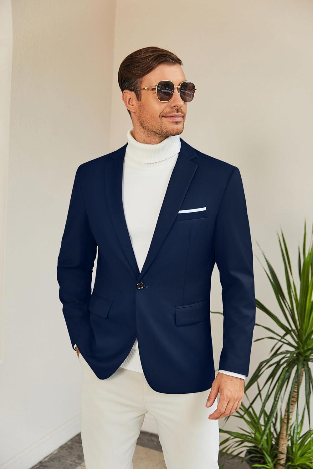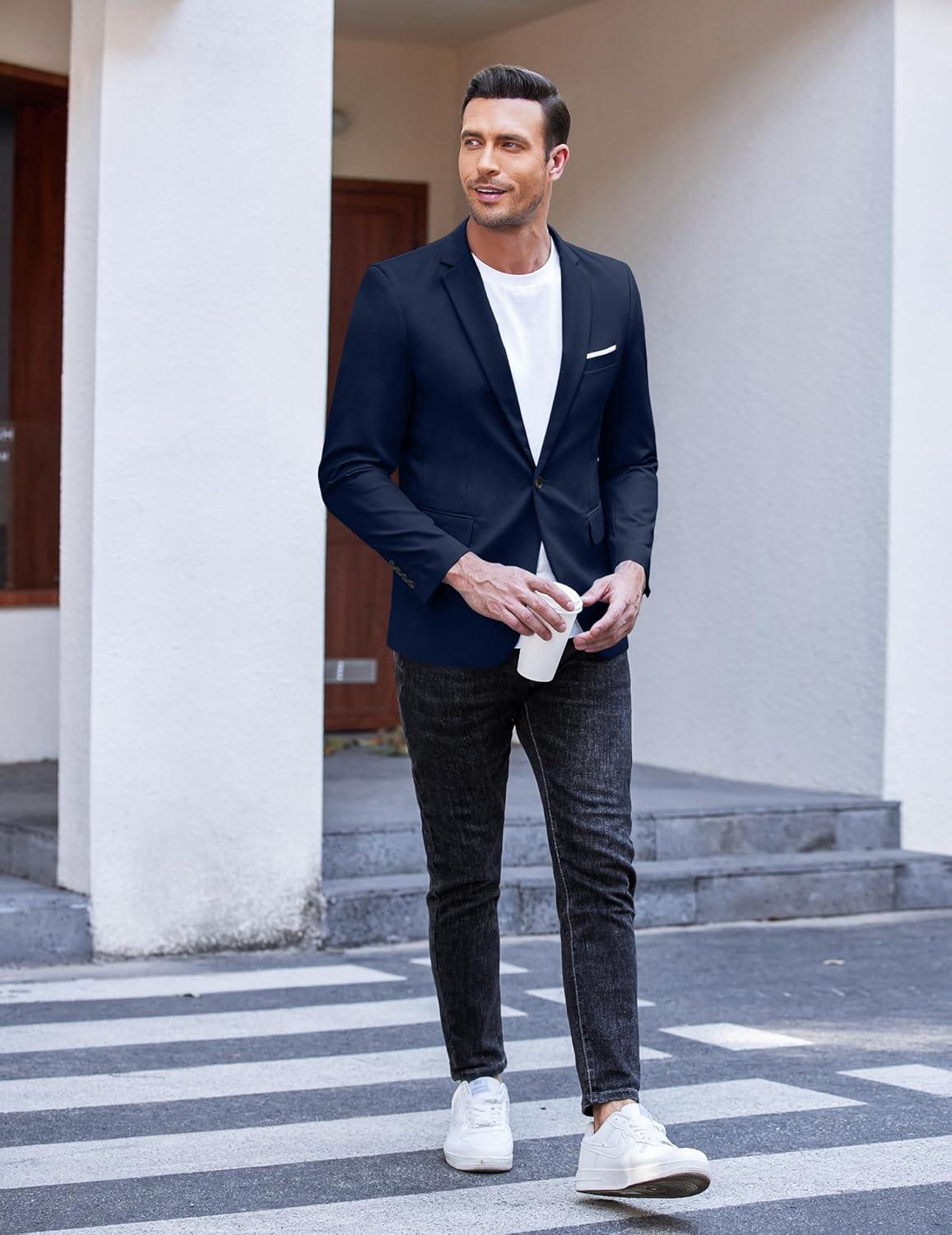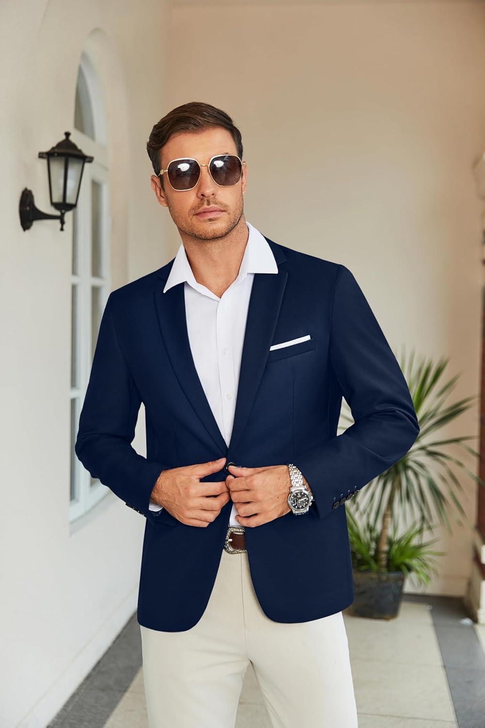 COOFANDY Men's Slim Fit Casual Blazers Lightweight Sport Coats One Button Suit Jackets(Dark Blue)