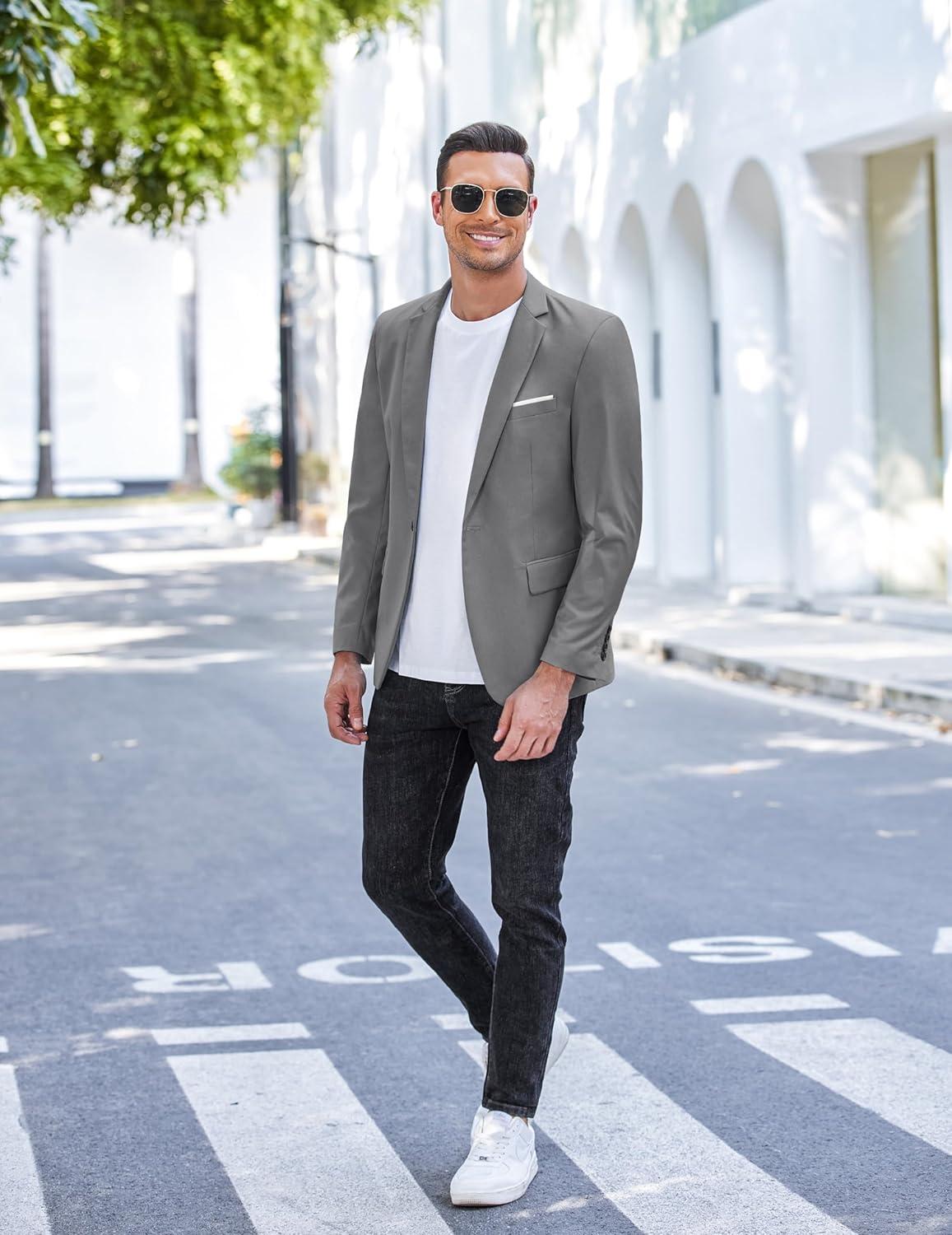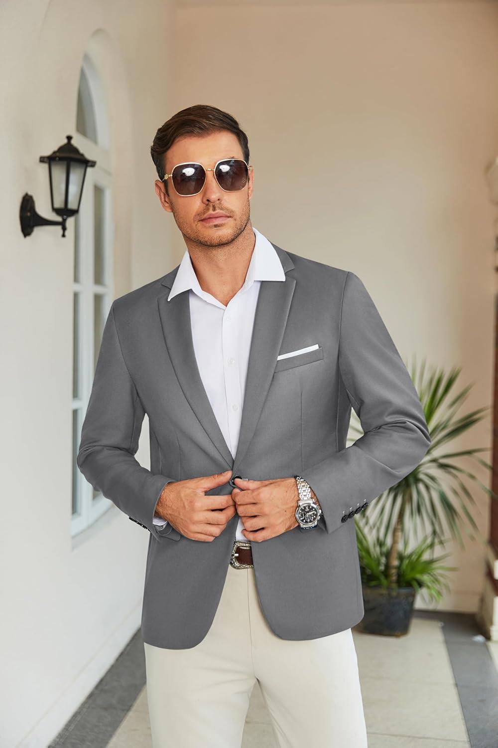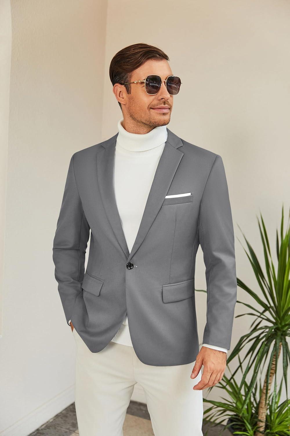 COOFANDY Men's Slim Fit Casual Blazers Lightweight Sport Coats One Button Suit Jackets(Dark Charcoal)