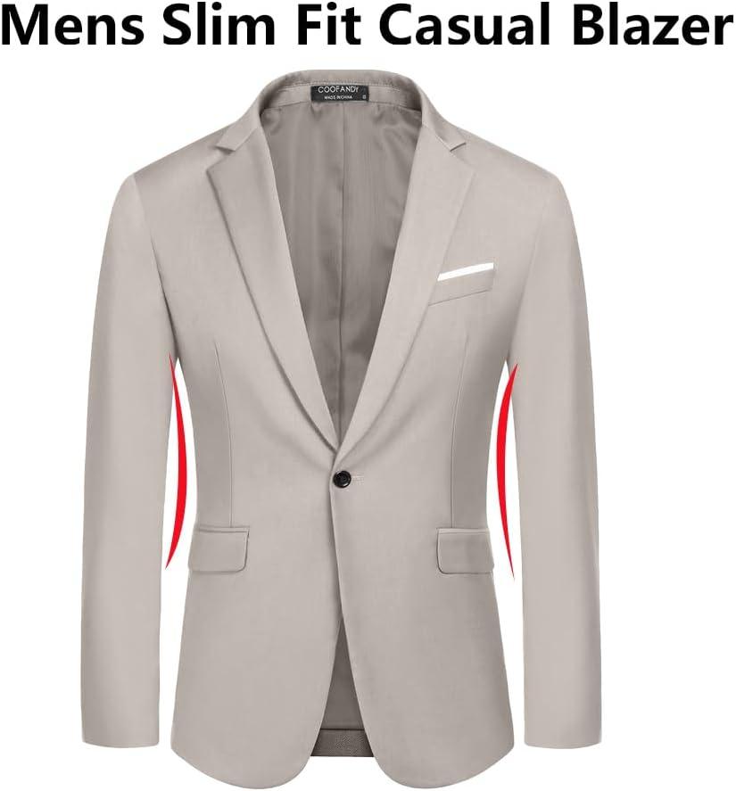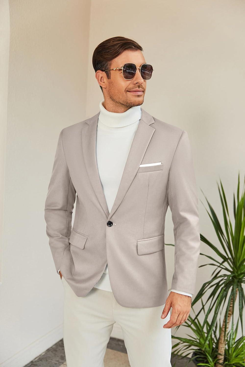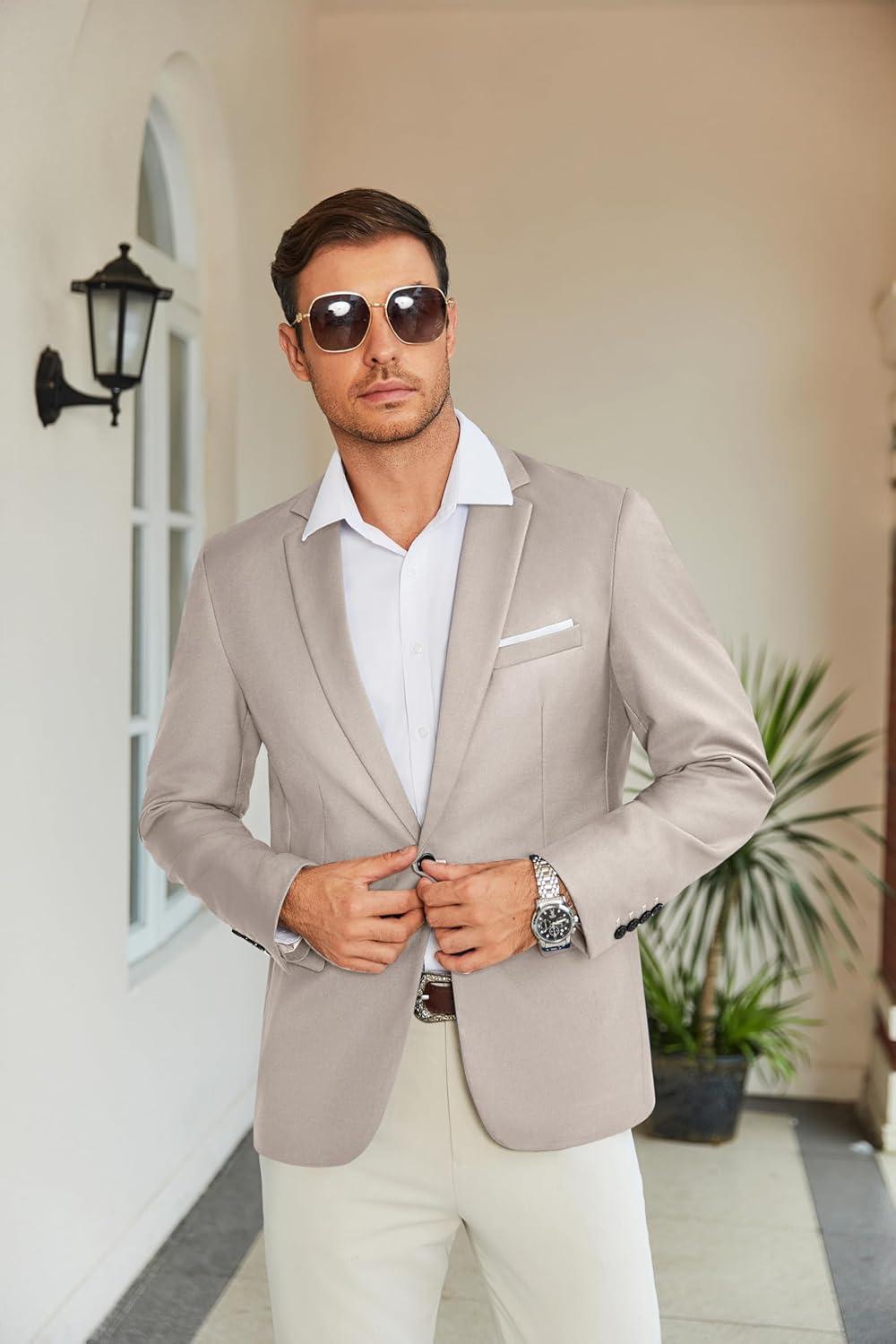 COOFANDY Men's Slim Fit Casual Blazers Lightweight Sport Coats One Button Suit Jackets(Light Grey)