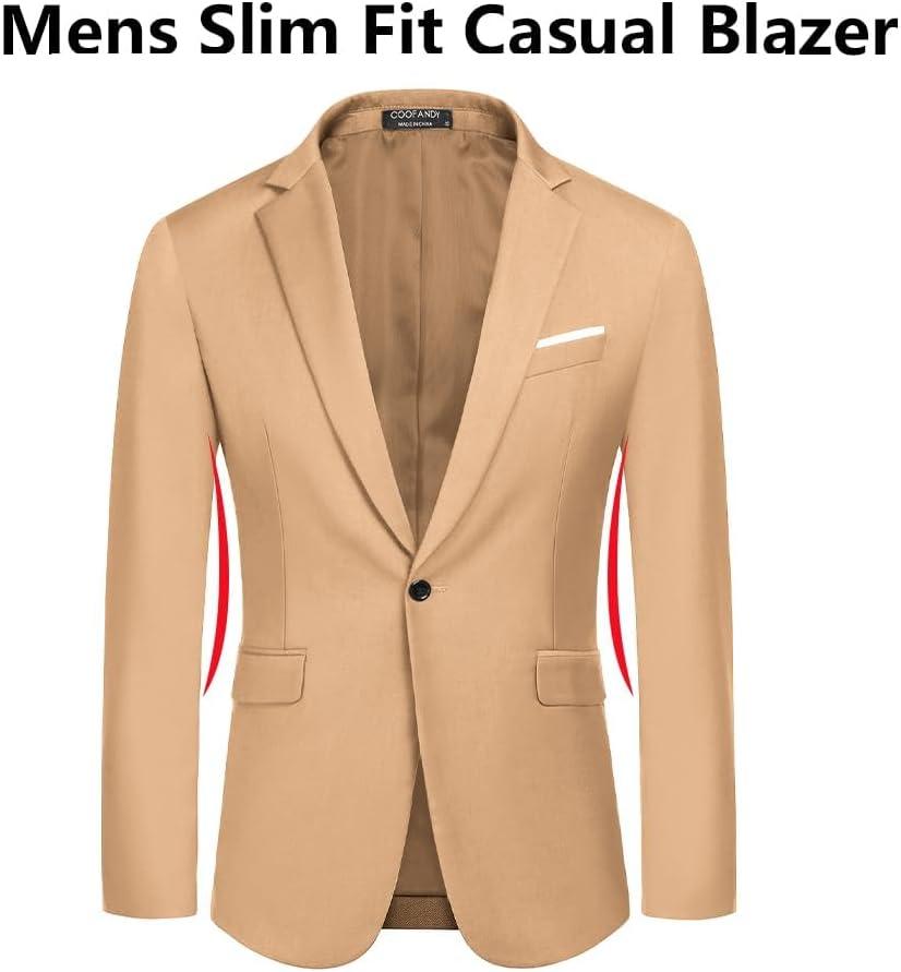 COOFANDY Men’s Slim Fit Casual Blazers Lightweight Sport Coats One Button Suit Jackets(Light Khaki)