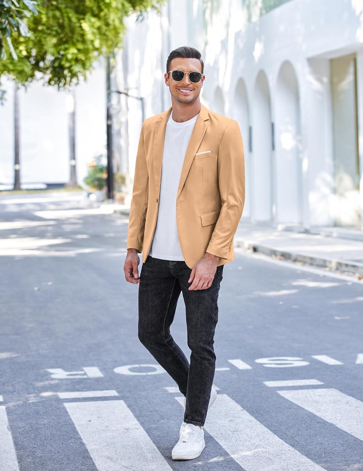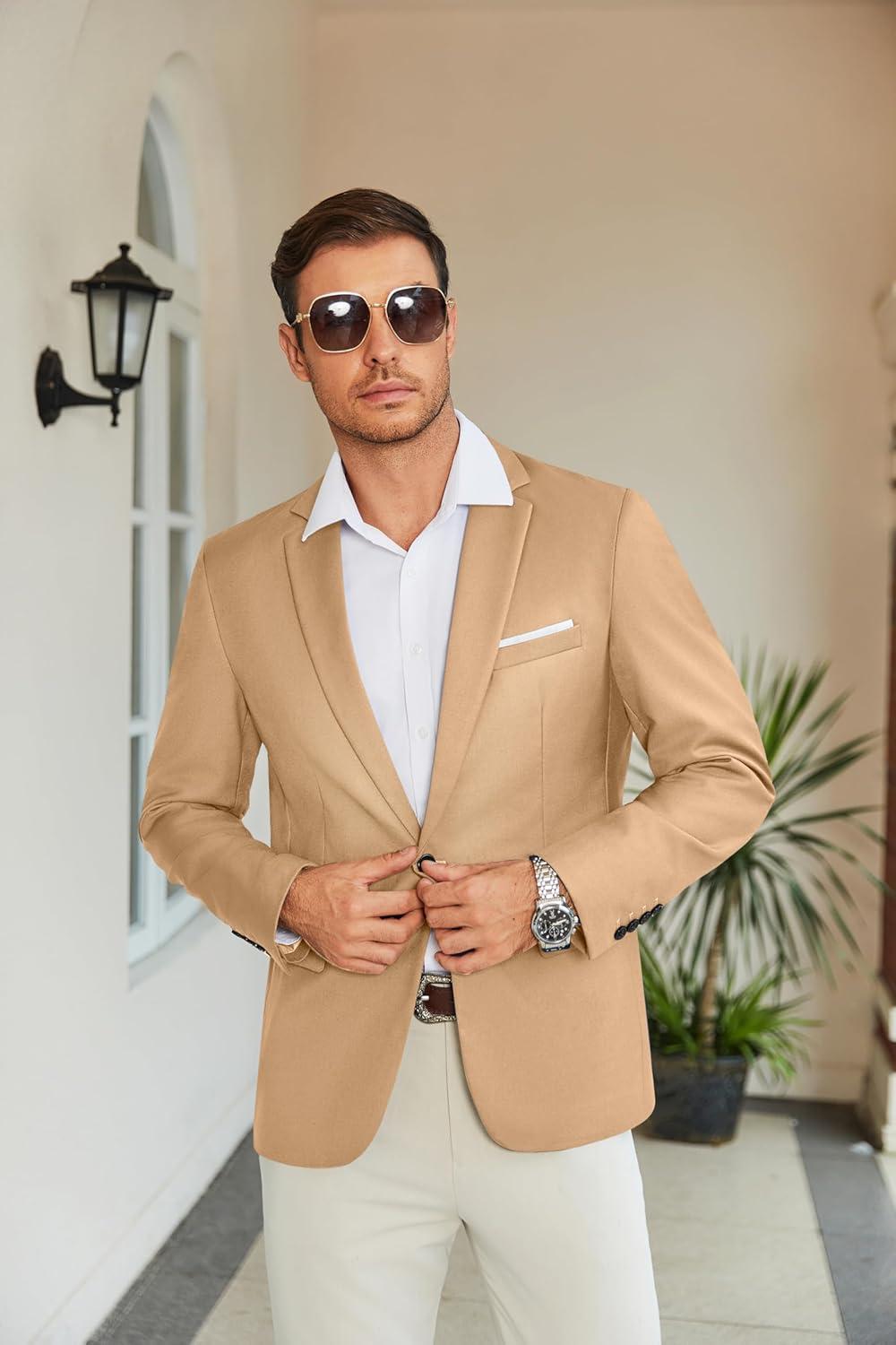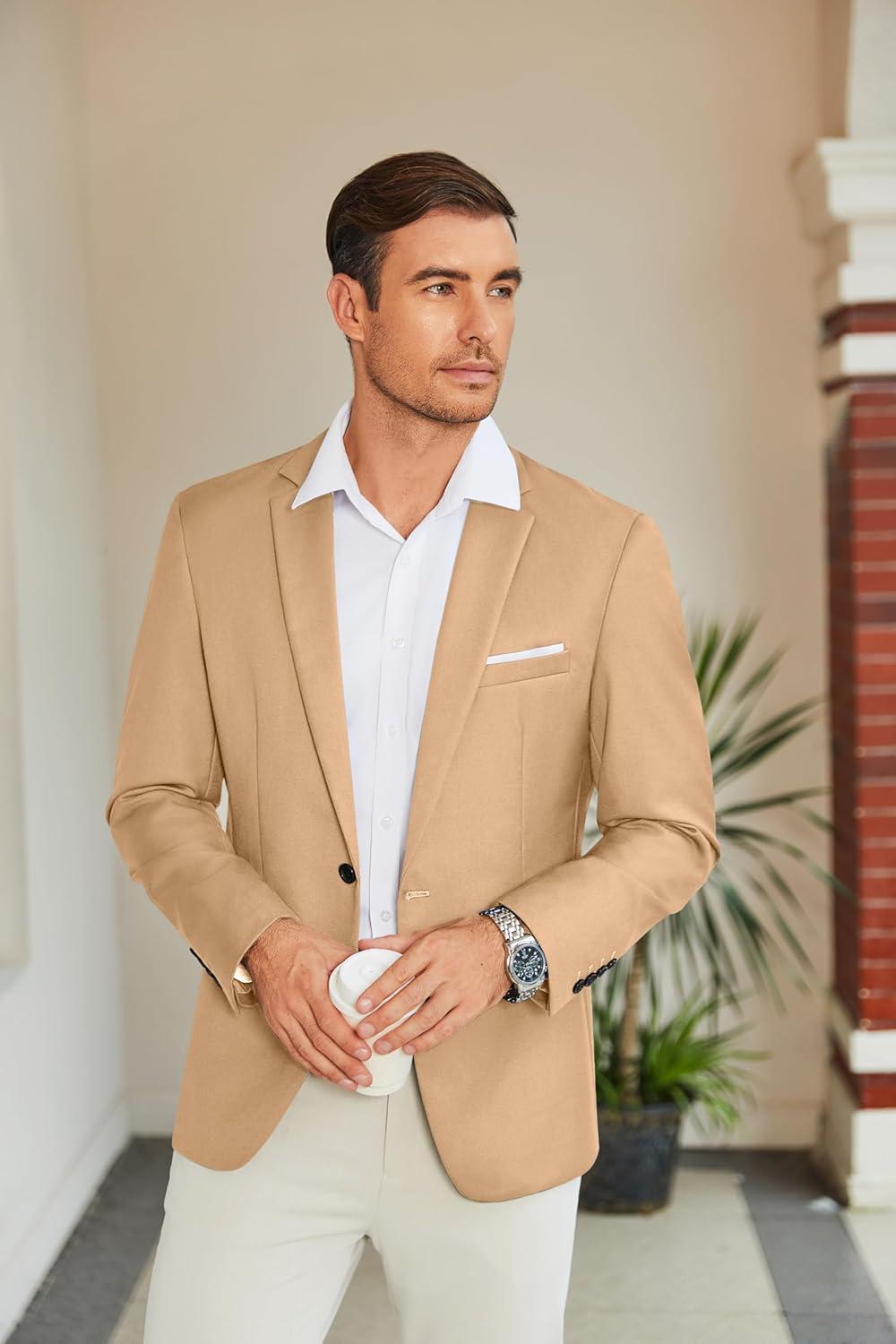 COOFANDY Men's Slim Fit Casual Blazers Lightweight Sport Coats One Button Suit Jackets(Light Khaki)