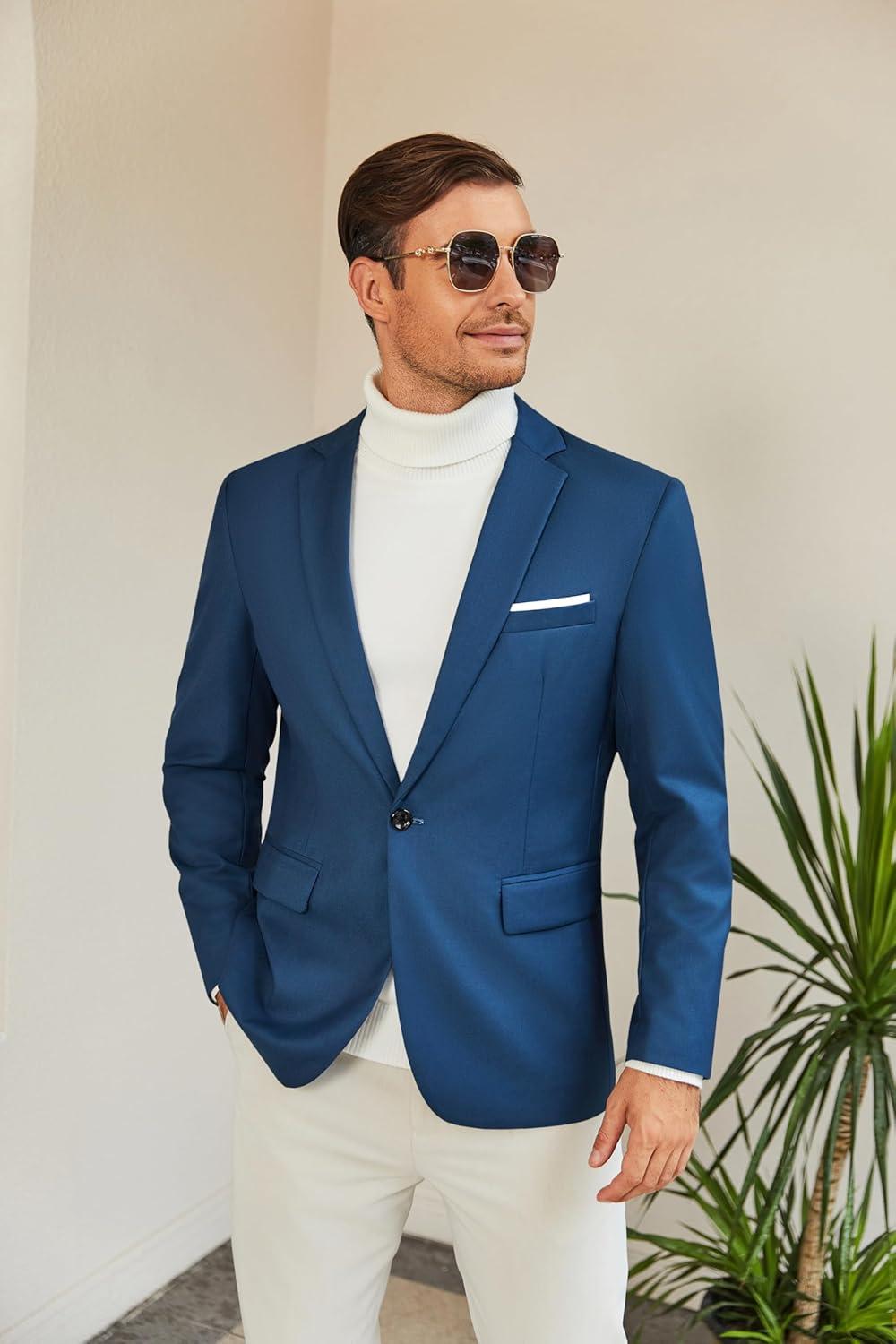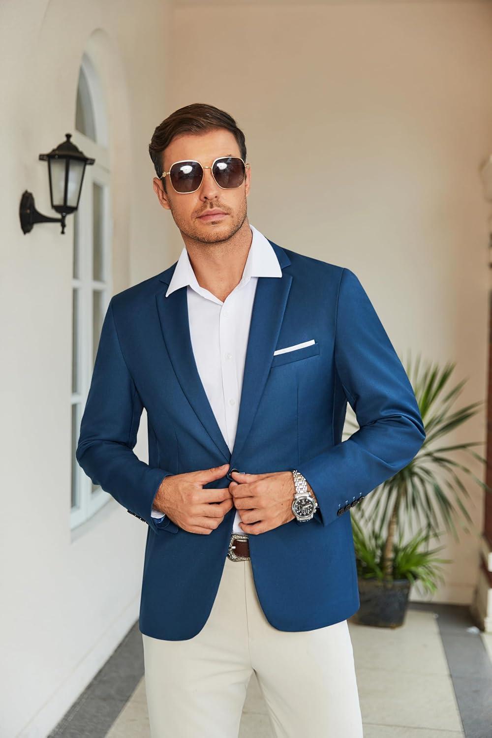 COOFANDY Men’s Slim Fit Casual Blazers Lightweight Sport Coats One Button Suit Jackets(Navy Blue)