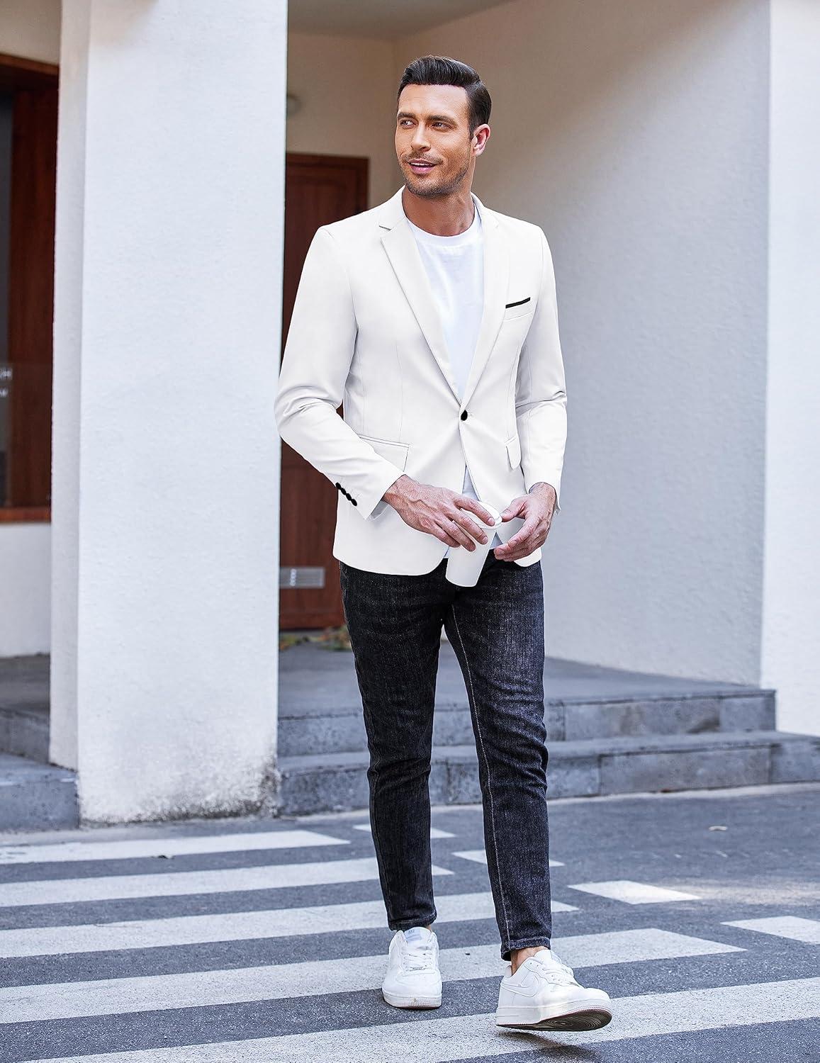 COOFANDY Men’s Slim Fit Casual Blazers Lightweight Sport Coats One Button Suit Jackets(White)
