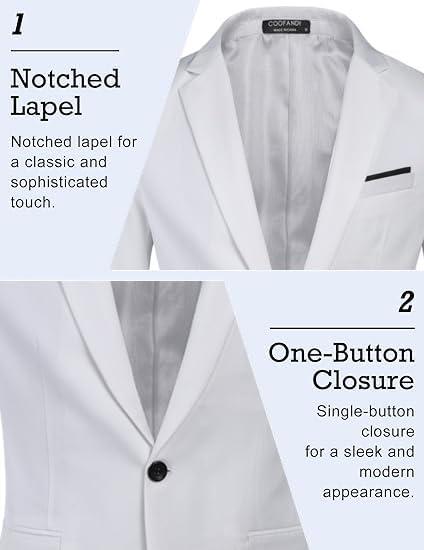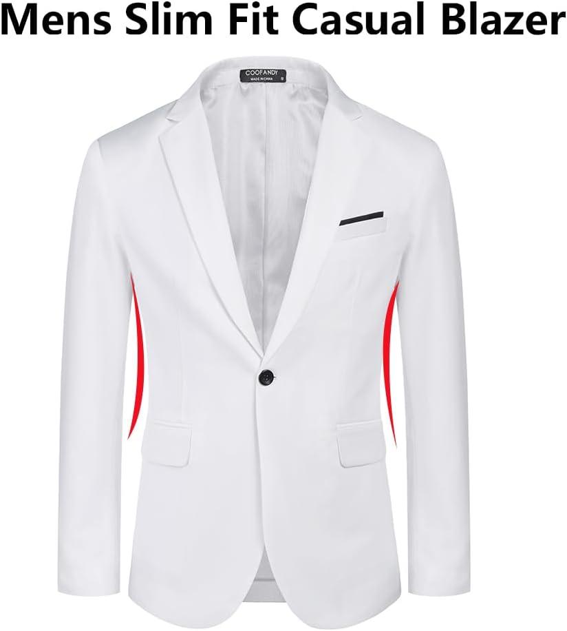 COOFANDY Men's Slim Fit Casual Blazers Lightweight Sport Coats One Button Suit Jackets(White)