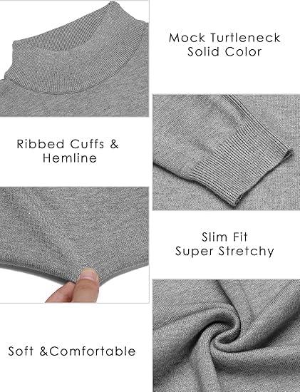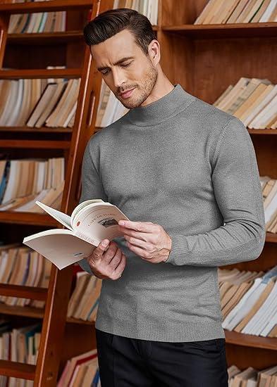 COOFANDY Men's Slim Fit Mock Turtleneck Pullover Sweater Casual Basic Knitted Thermal Sweaters(Grey)