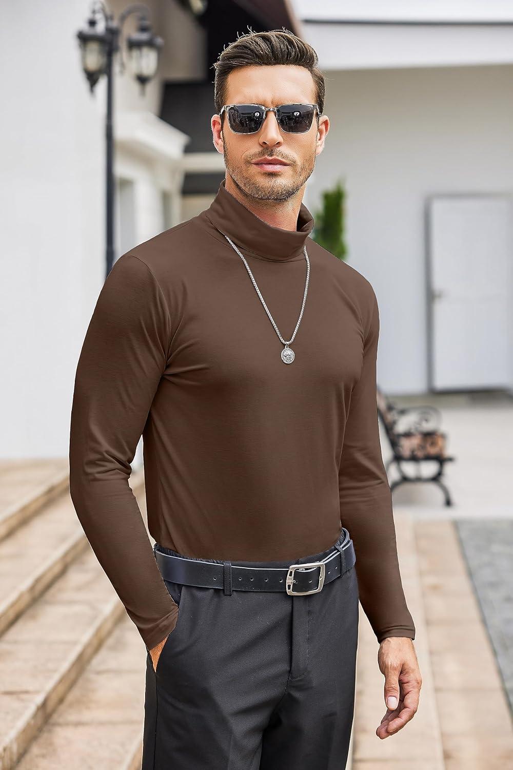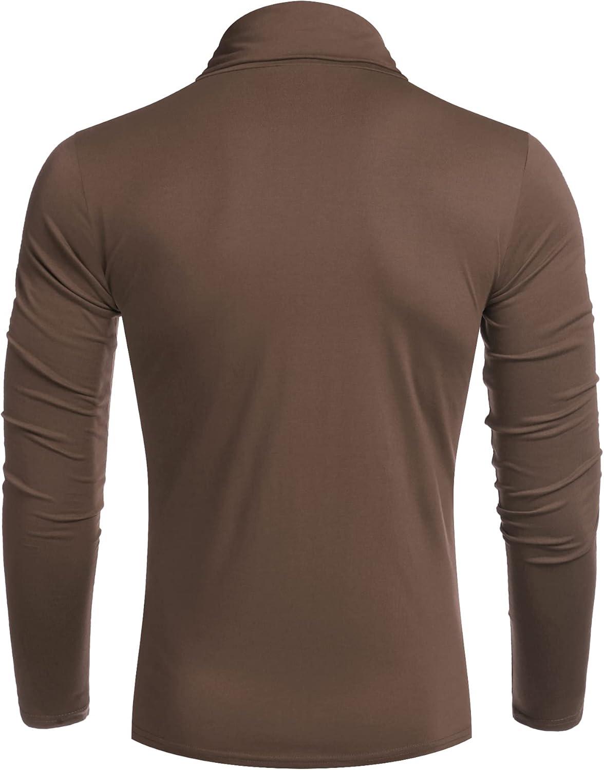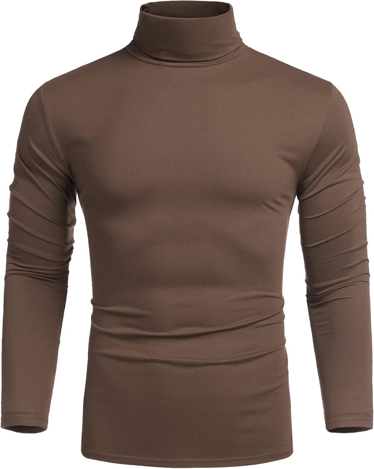 COOFANDY Men's Slim Fit Turtleneck Cotton T Shirts Casual Long Sleeve Lightweight Pullover Sweater Basic Tops(Brown)