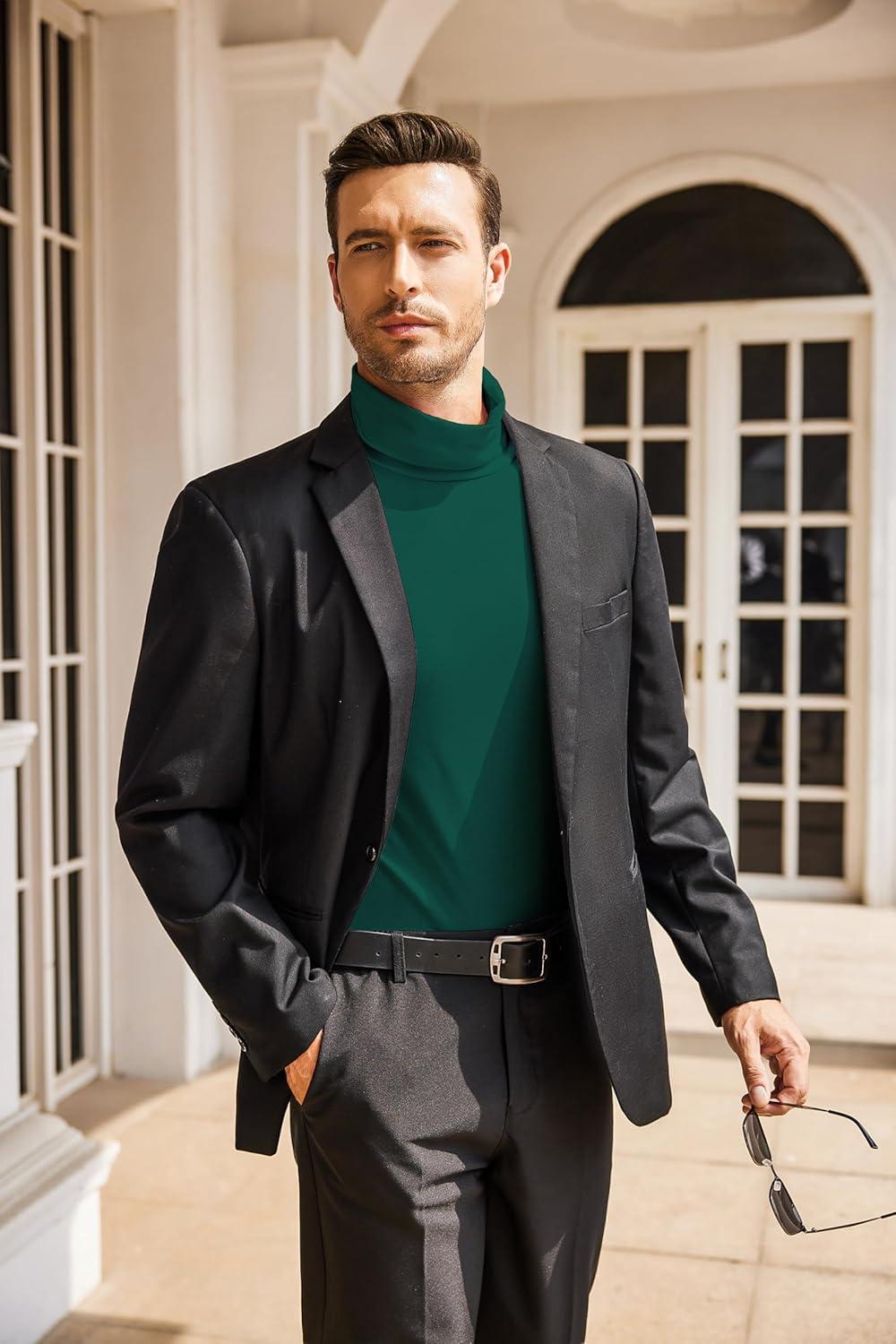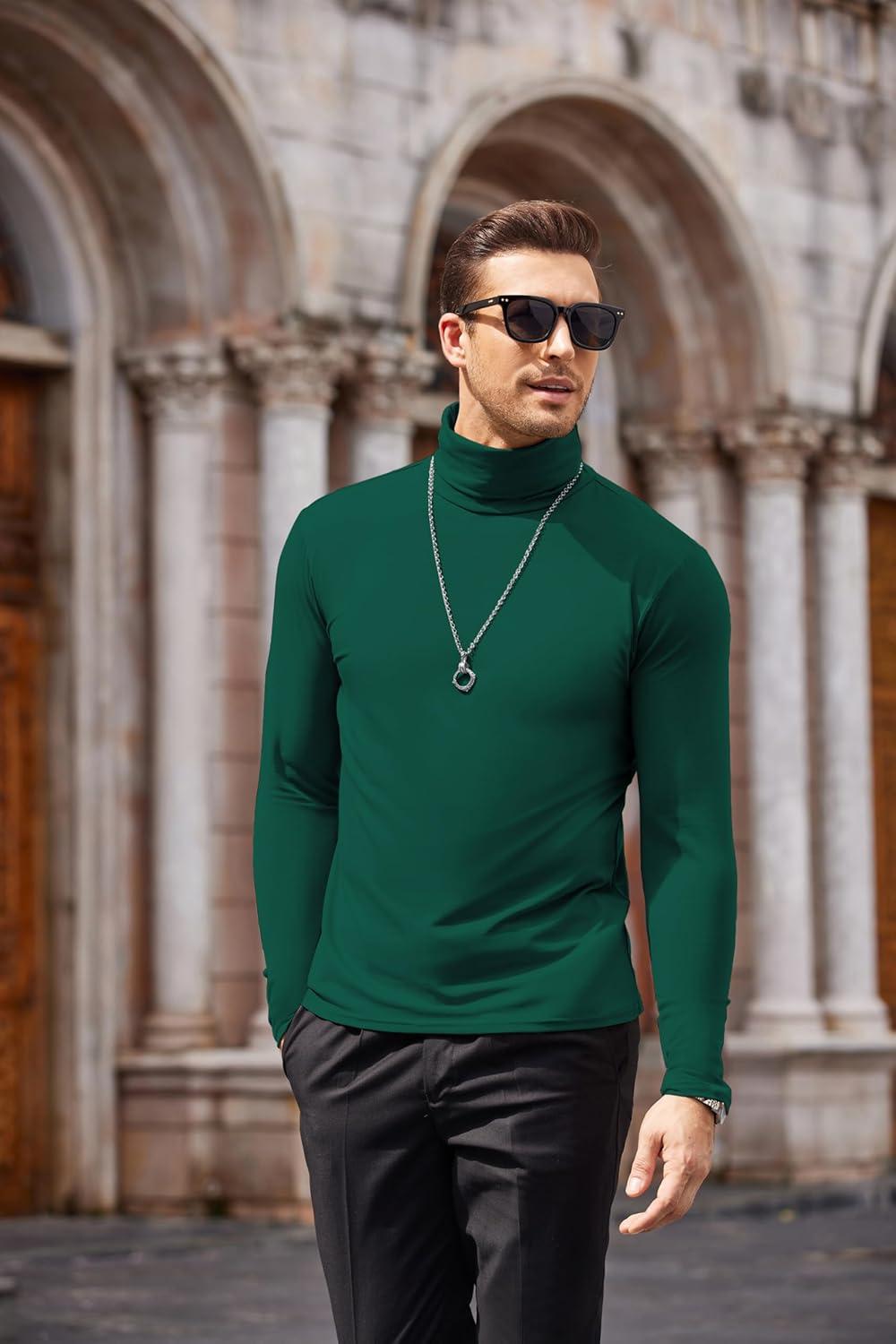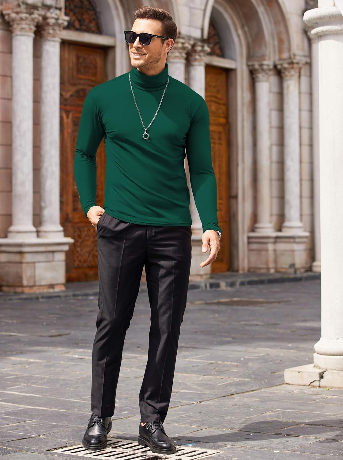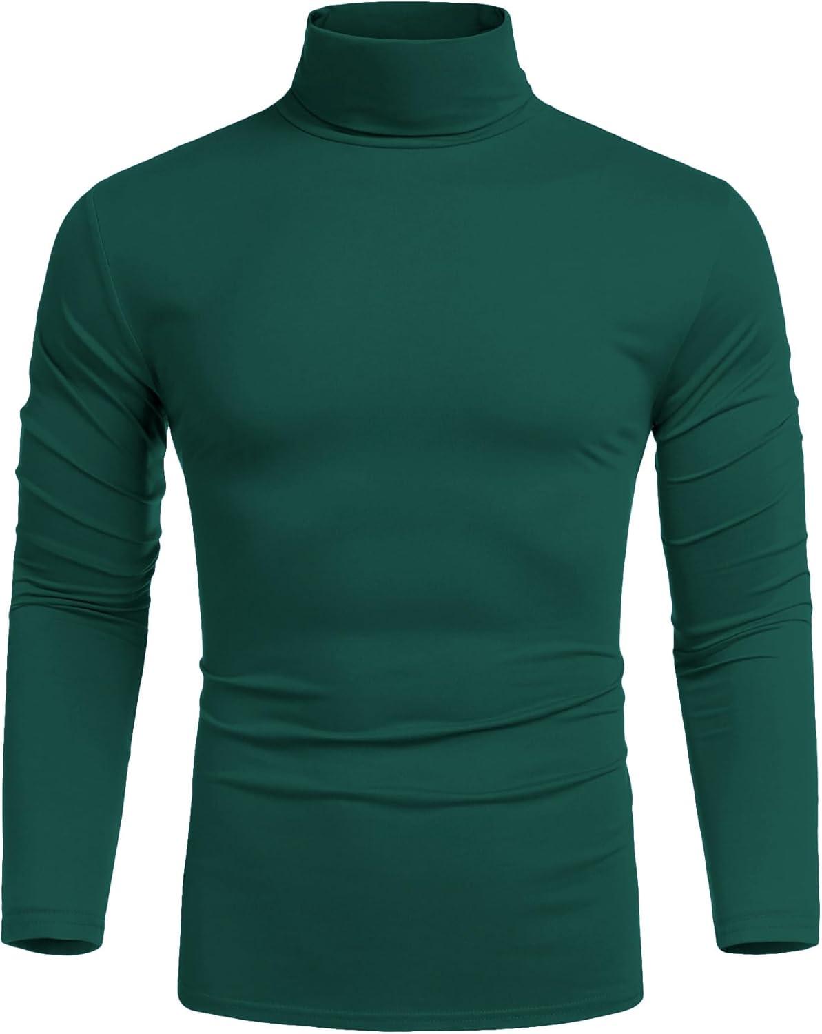 COOFANDY Men's Slim Fit Turtleneck Cotton T Shirts Casual Long Sleeve Lightweight Pullover Sweater Basic Tops(Dark Green)