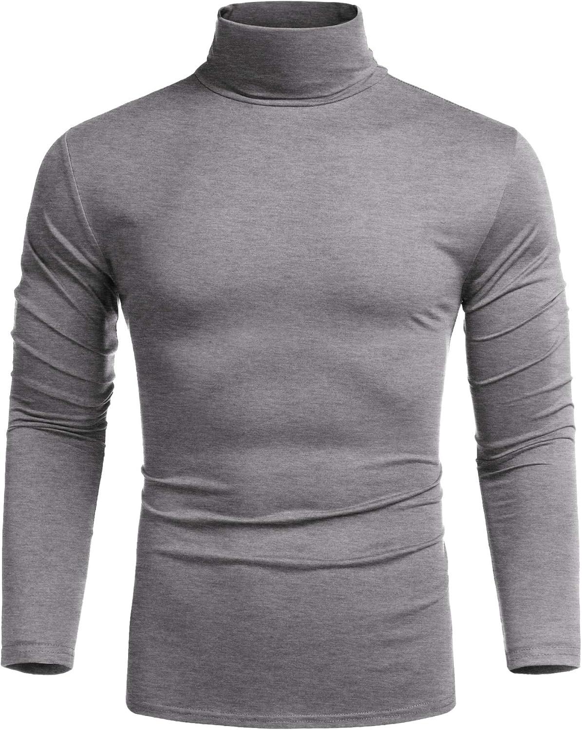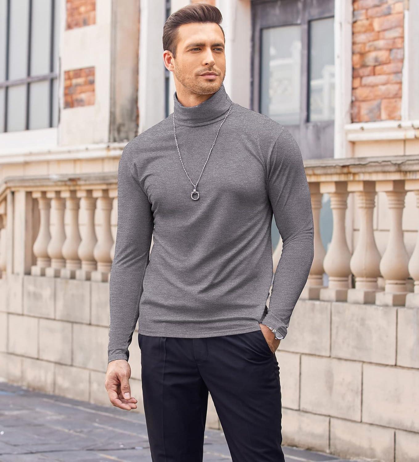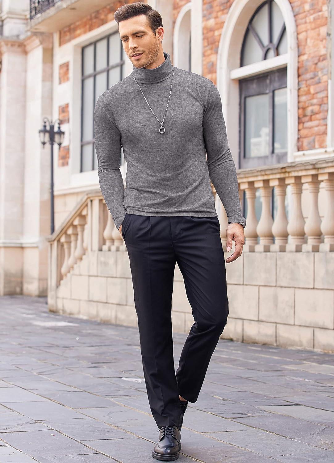 COOFANDY Men's Slim Fit Turtleneck Cotton T Shirts Casual Long Sleeve Lightweight Pullover Sweater Basic Tops(Grey)