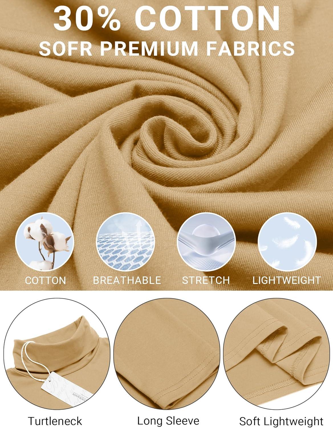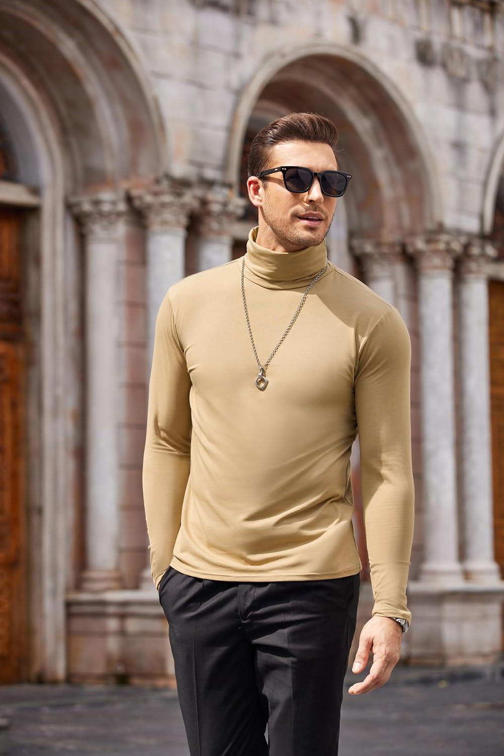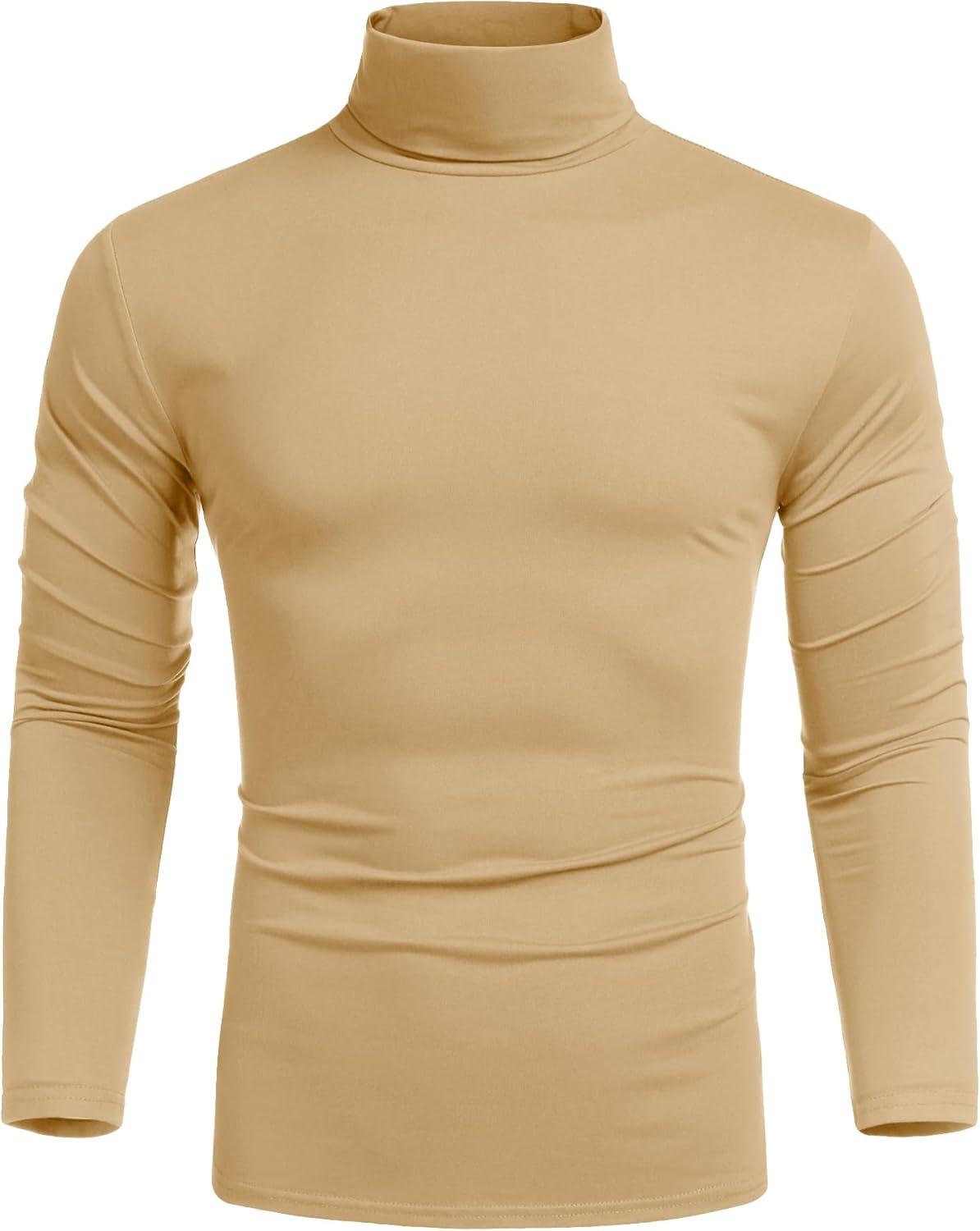 COOFANDY Men's Slim Fit Turtleneck Cotton T Shirts Casual Long Sleeve Lightweight Pullover Sweater Basic Tops(Khaki)