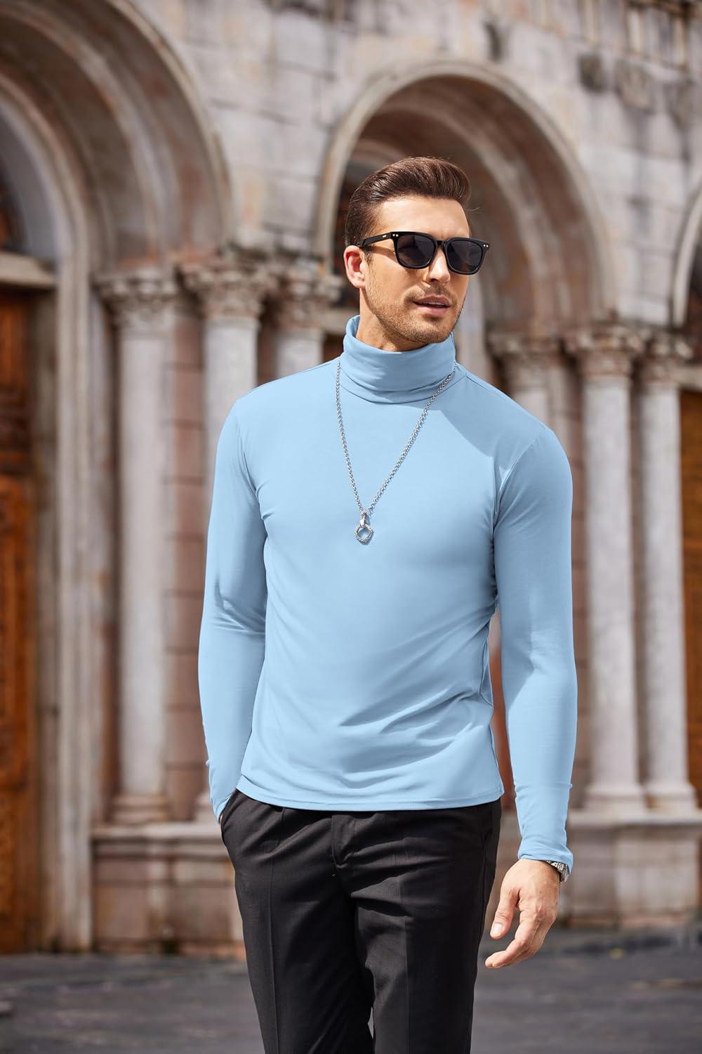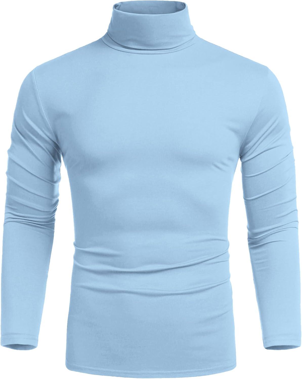COOFANDY Men's Slim Fit Turtleneck Cotton T Shirts Casual Long Sleeve Lightweight Pullover Sweater Basic Tops(Light Blue)