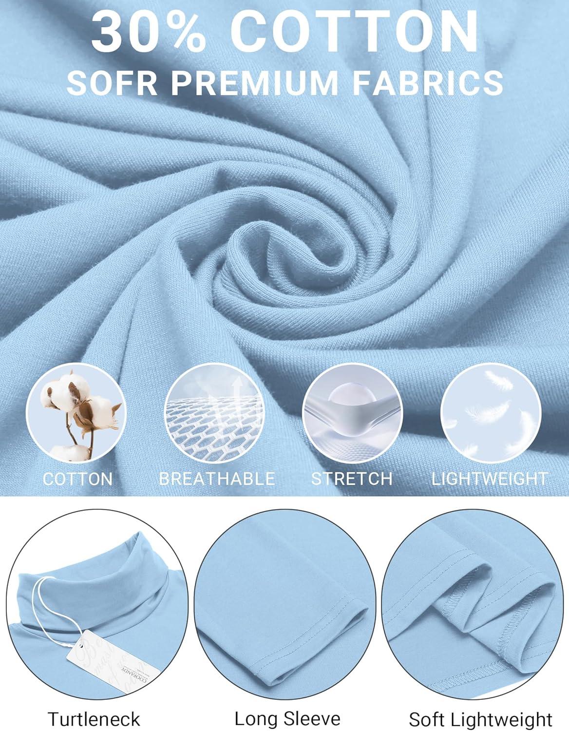 COOFANDY Men’s Slim Fit Turtleneck Cotton T Shirts Casual Long Sleeve Lightweight Pullover Sweater Basic Tops(Light Blue)