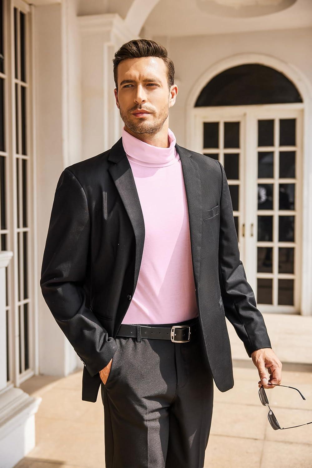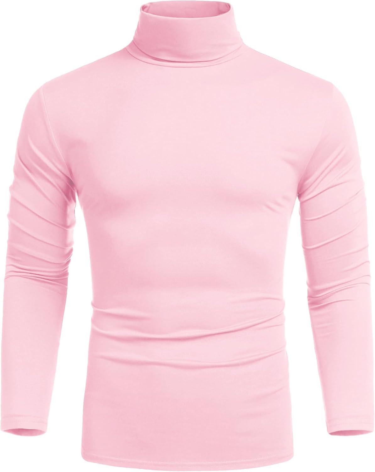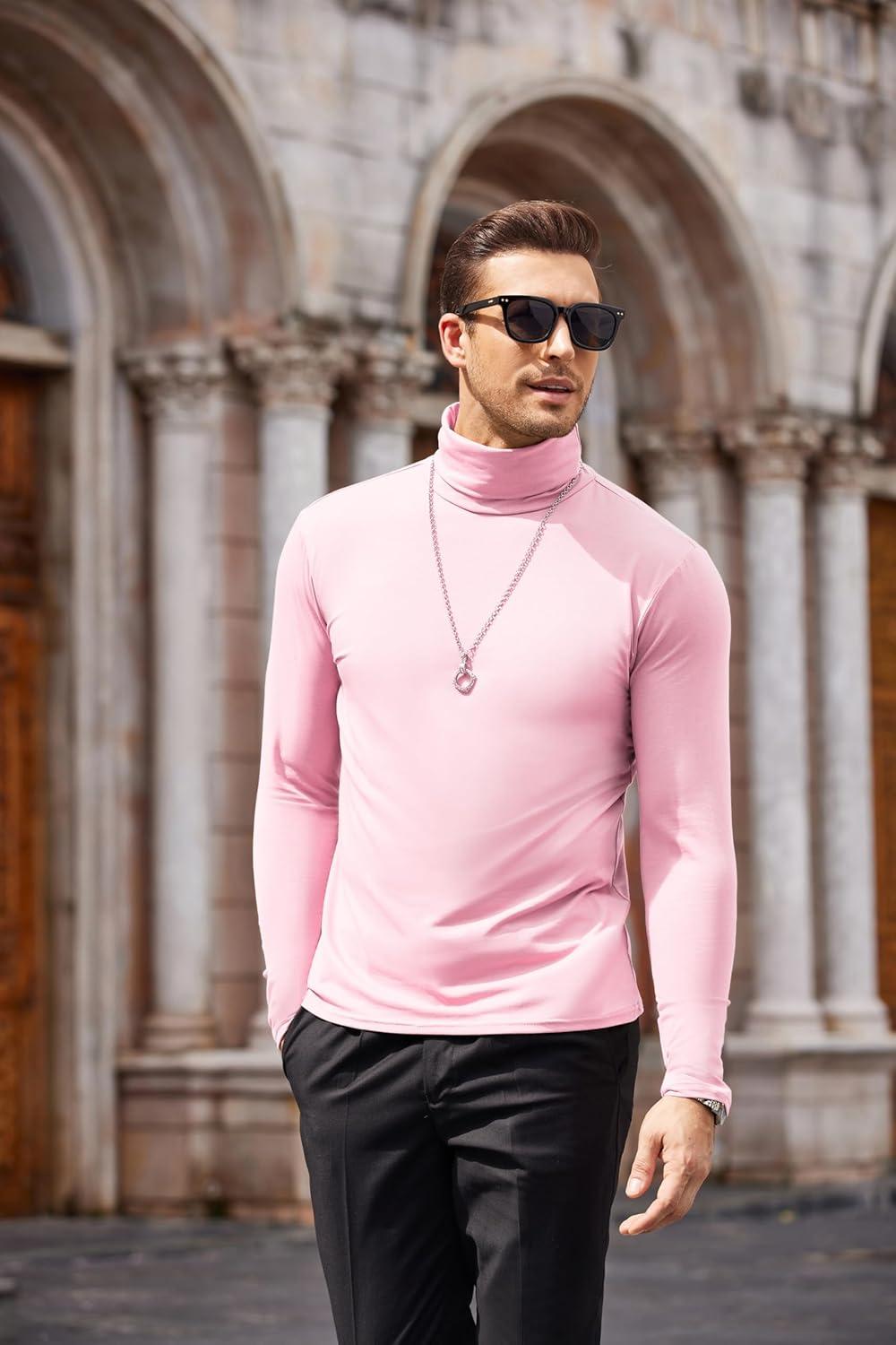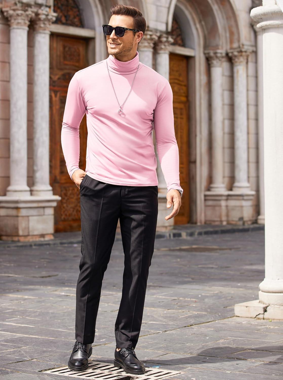 COOFANDY Men’s Slim Fit Turtleneck Cotton T Shirts Casual Long Sleeve Lightweight Pullover Sweater Basic Tops(Light Pink)