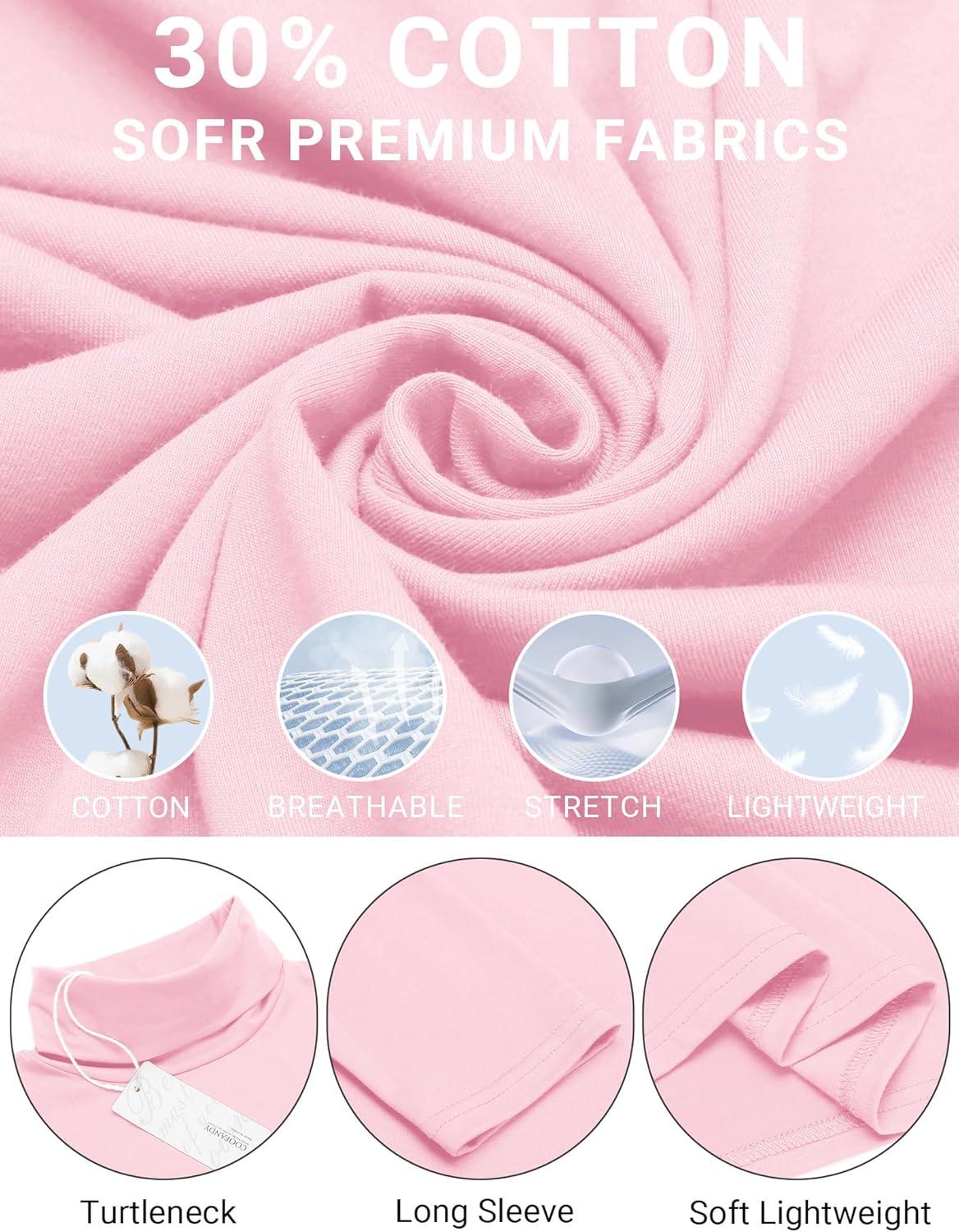 COOFANDY Men's Slim Fit Turtleneck Cotton T Shirts Casual Long Sleeve Lightweight Pullover Sweater Basic Tops(Light Pink)