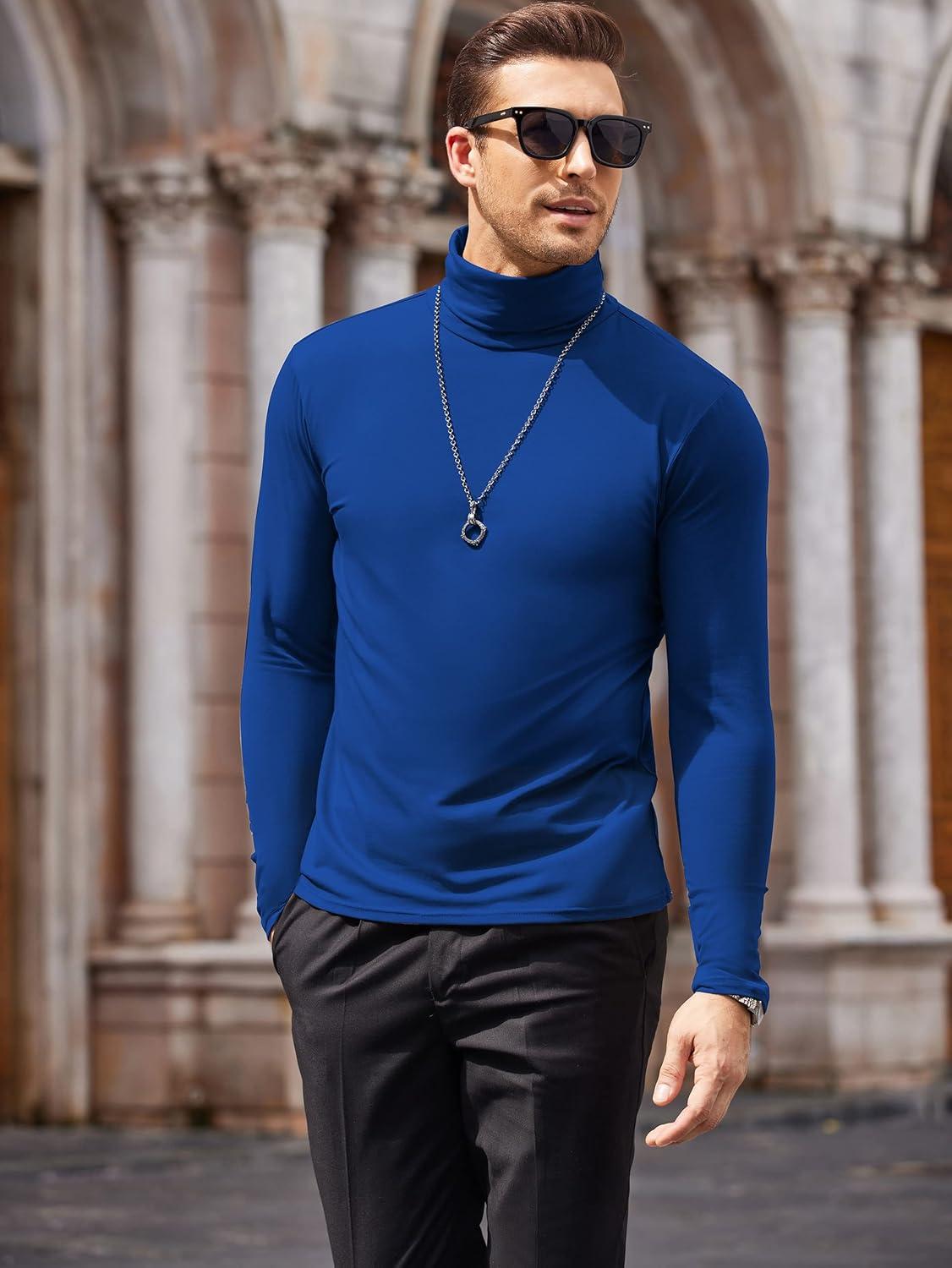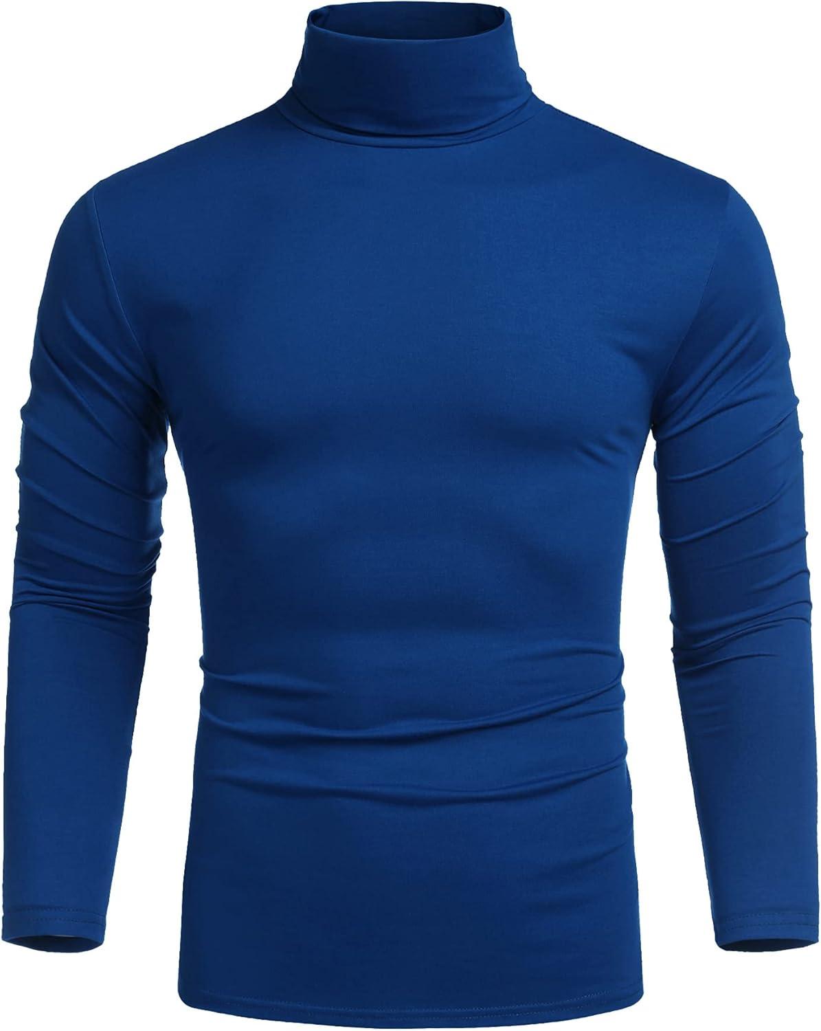 COOFANDY Men’s Slim Fit Turtleneck Cotton T Shirts Casual Long Sleeve Lightweight Pullover Sweater Basic Tops(Royal Blue)