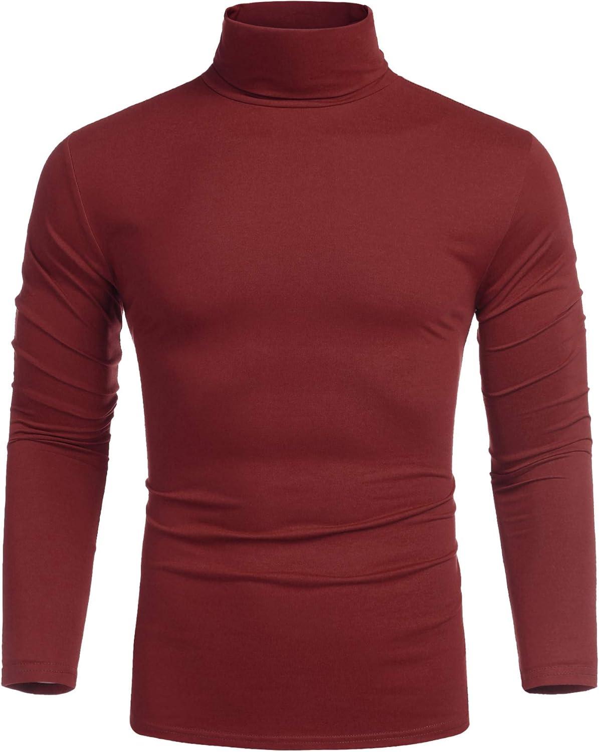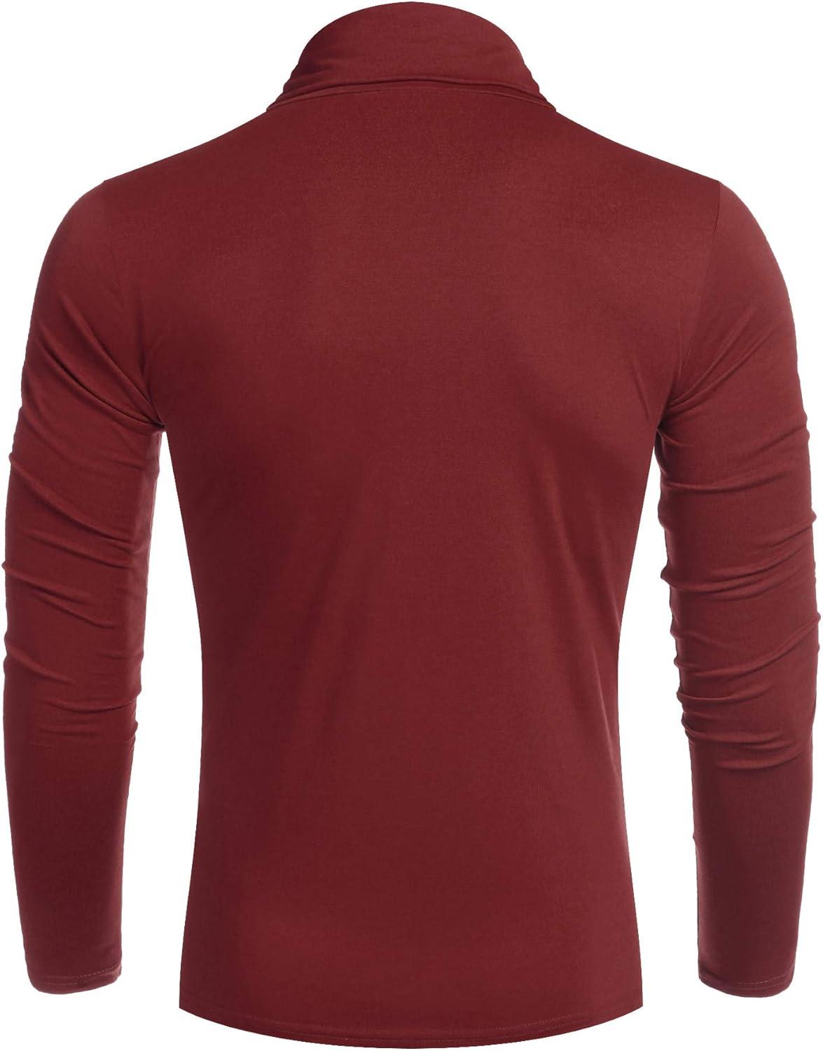 COOFANDY Men's Slim Fit Turtleneck Cotton T Shirts Casual Long Sleeve Lightweight Pullover Sweater Basic Tops(Wine Red)