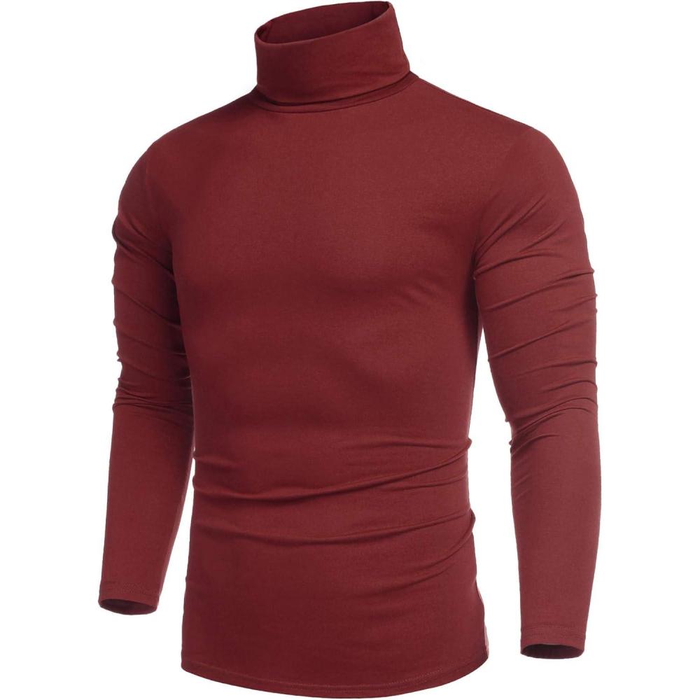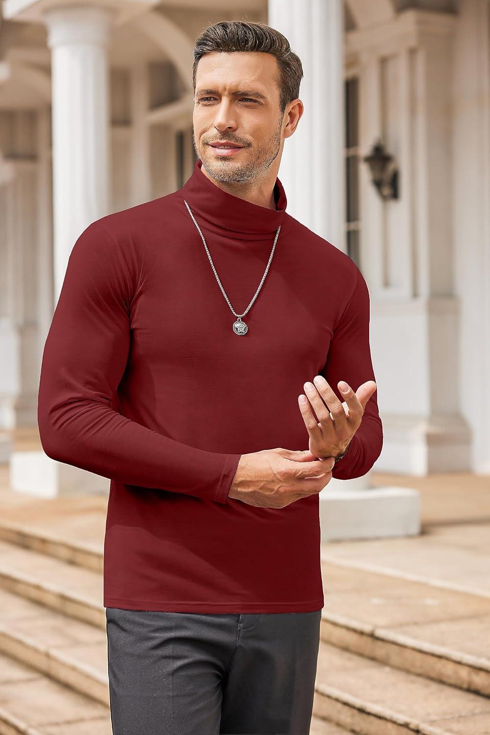COOFANDY Men’s Slim Fit Turtleneck Cotton T Shirts Casual Long Sleeve Lightweight Pullover Sweater Basic Tops(Wine Red)