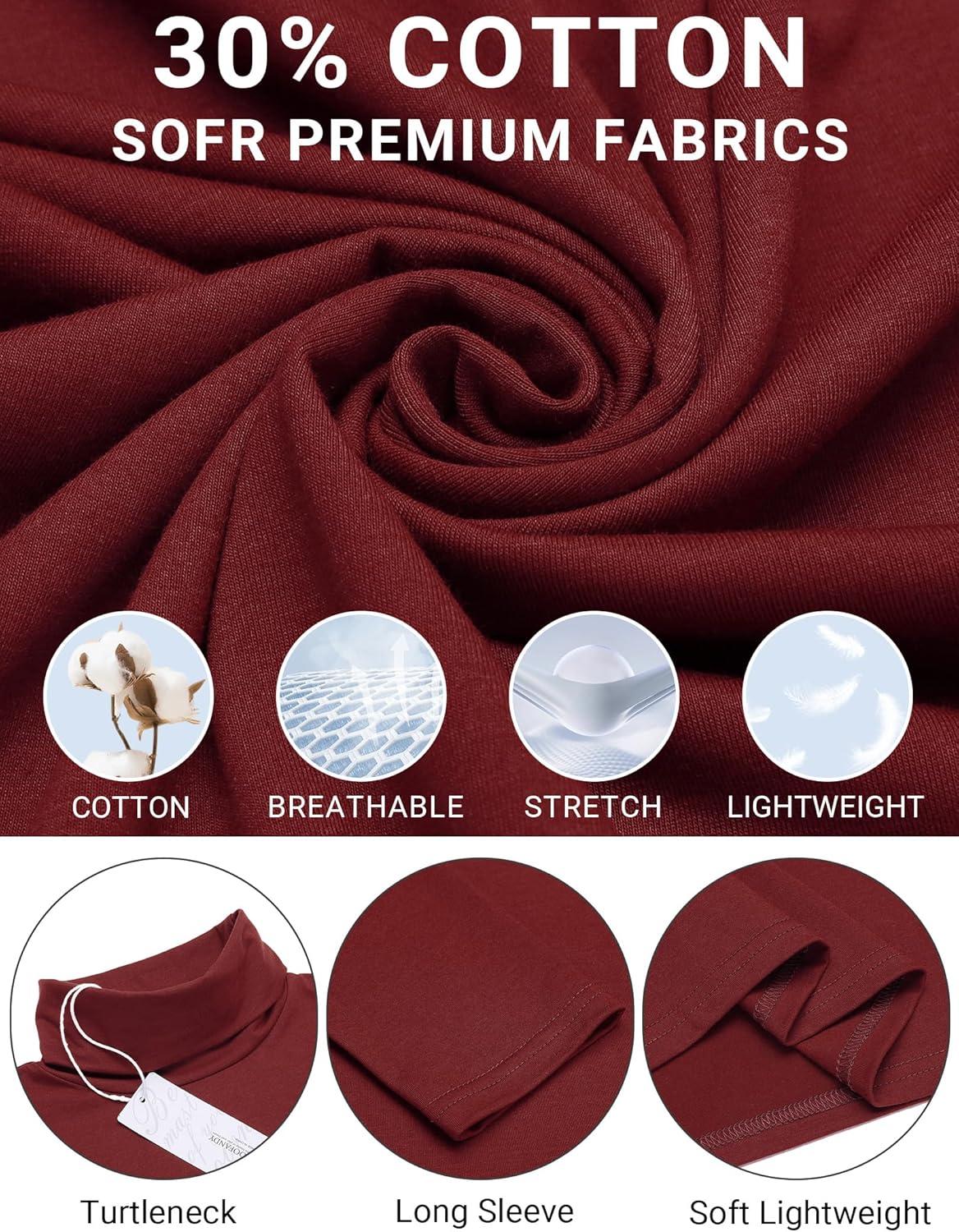 imageCOOFANDY Mens Slim Fit Turtleneck Cotton T Shirts Casual Long Sleeve Lightweight Pullover Sweater Basic TopsWine Red