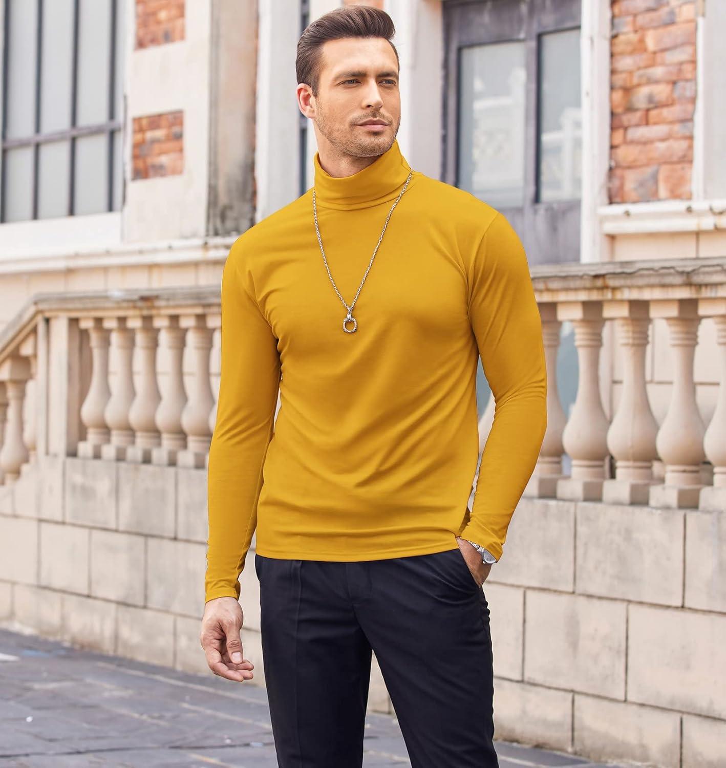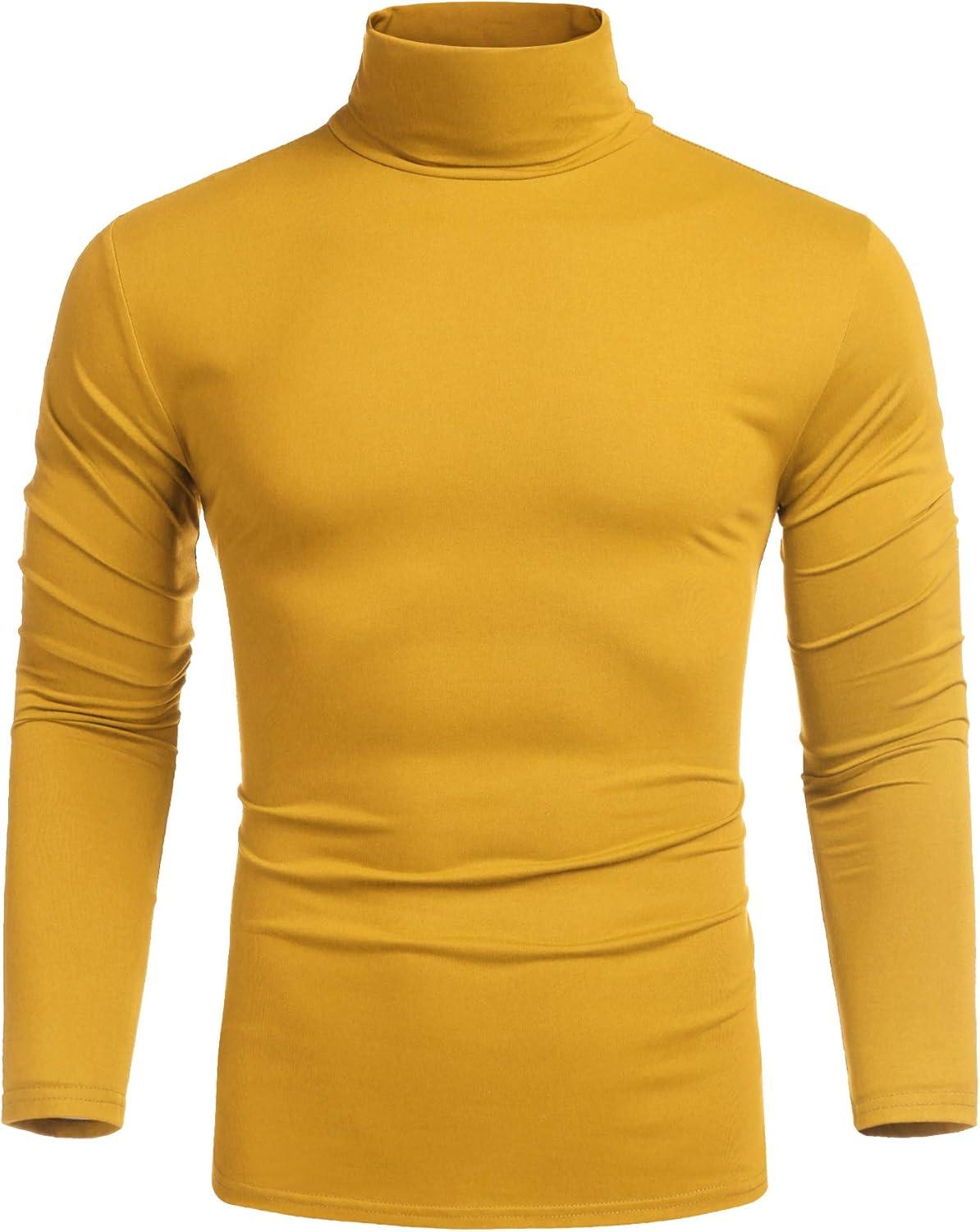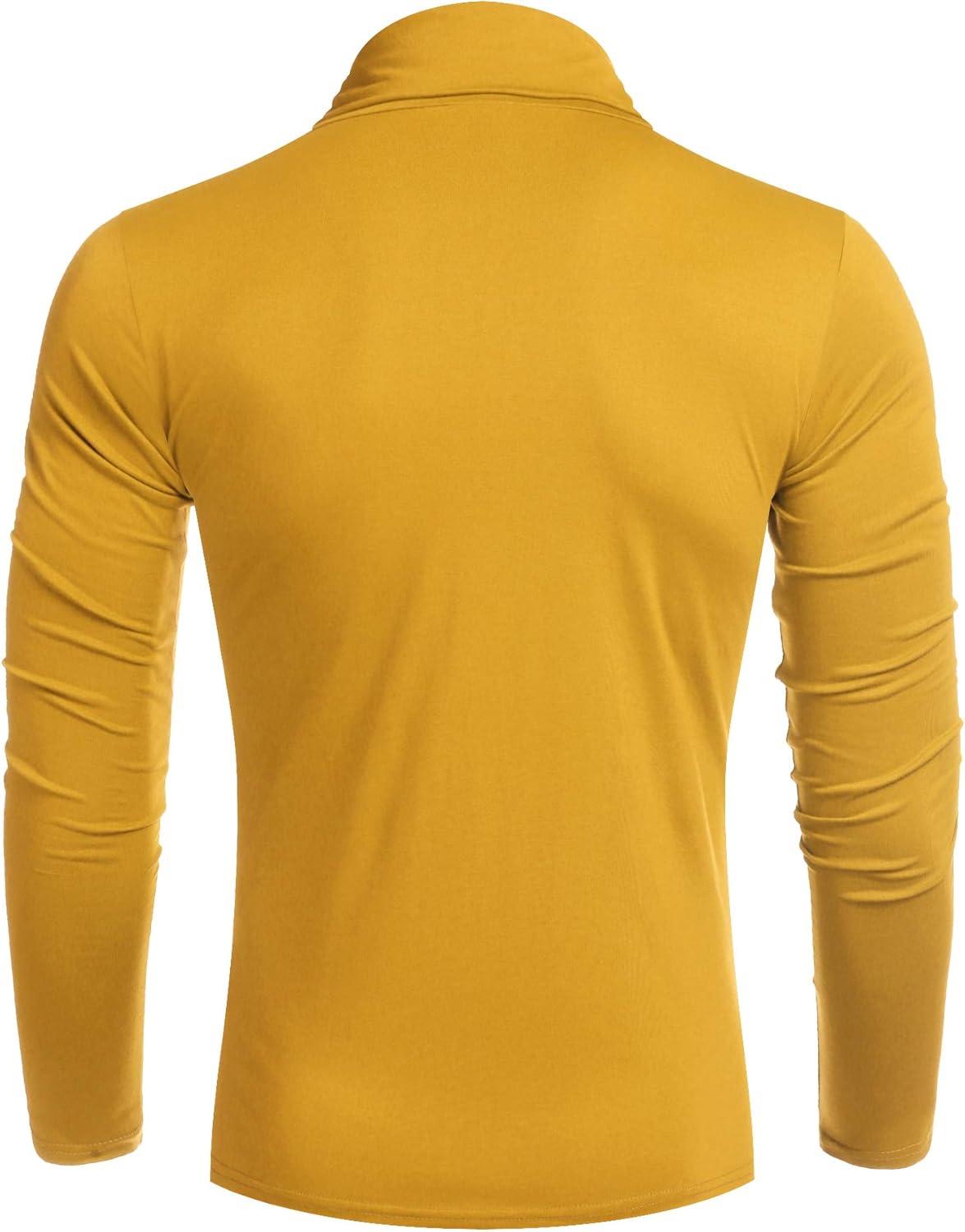COOFANDY Men's Slim Fit Turtleneck Cotton T Shirts Casual Long Sleeve Lightweight Pullover Sweater Basic Tops(Yellow)