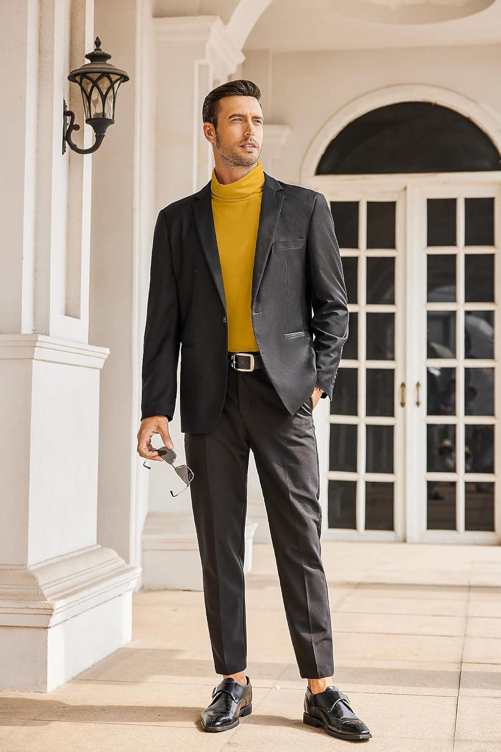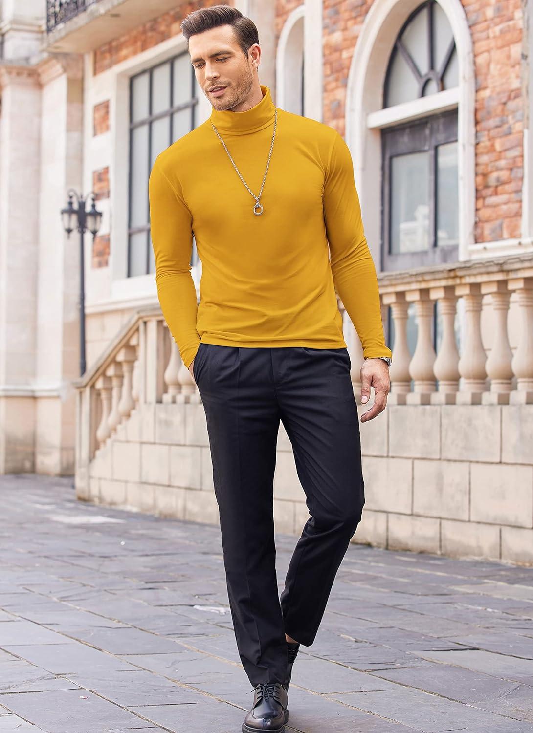 COOFANDY Men’s Slim Fit Turtleneck Cotton T Shirts Casual Long Sleeve Lightweight Pullover Sweater Basic Tops(Yellow)