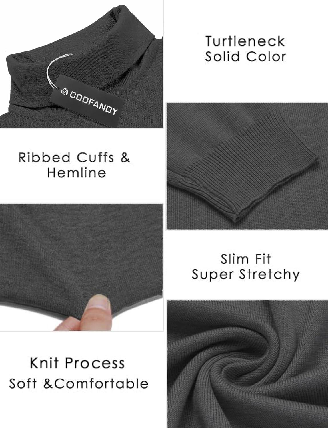 COOFANDY Men's Slim Fit Turtleneck Sweater Casual Basic Knitted Long Sleeve Pullover Sweater(Dark Grey)