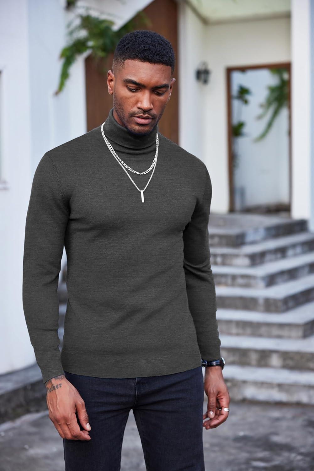COOFANDY Men’s Slim Fit Turtleneck Sweater Casual Basic Knitted Long Sleeve Pullover Sweater(Dark Grey)