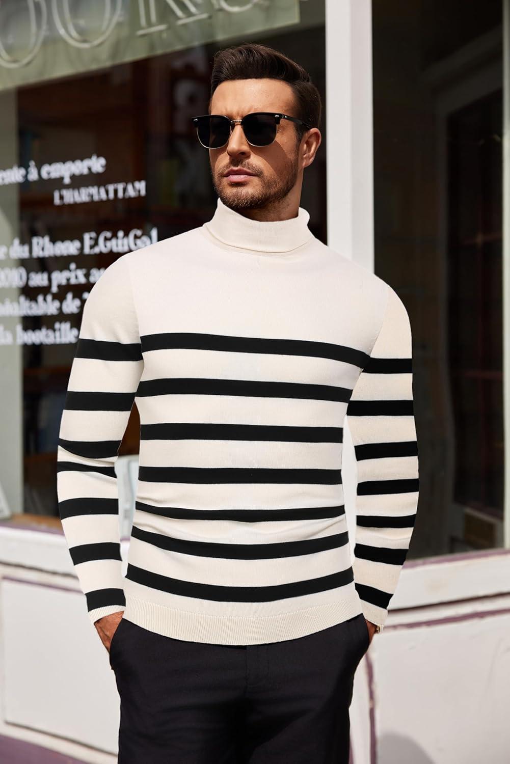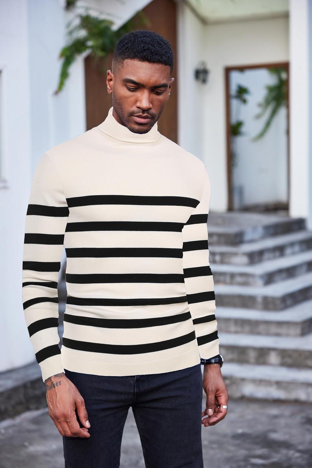 COOFANDY Men’s Slim Fit Turtleneck Sweater Casual Basic Knitted Long Sleeve Pullover Sweater(Ivory Breton)