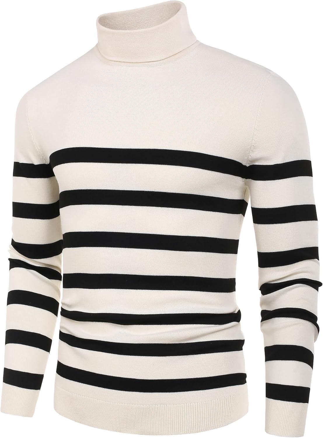 COOFANDY Men's Slim Fit Turtleneck Sweater Casual Basic Knitted Long Sleeve Pullover Sweater(Ivory Breton)