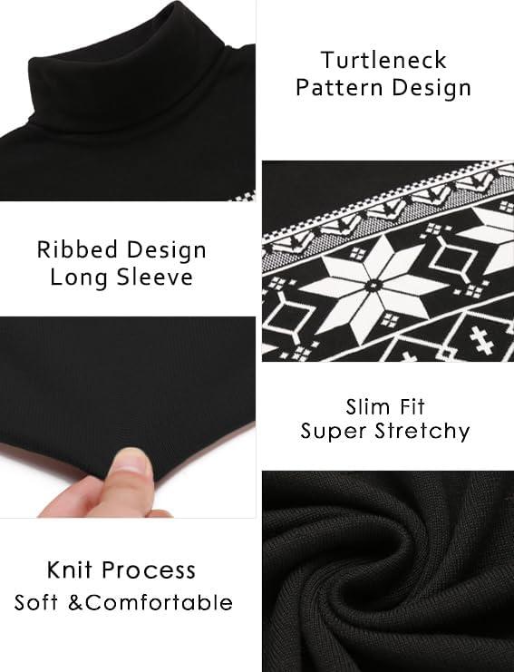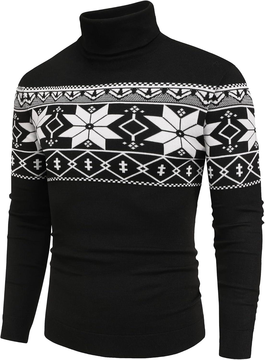 COOFANDY Men's Slim Fit Turtleneck Sweater Casual Basic Knitted Long Sleeve Pullover Sweater(Snowflake Black)