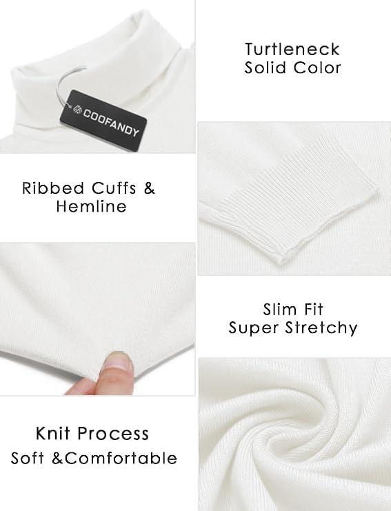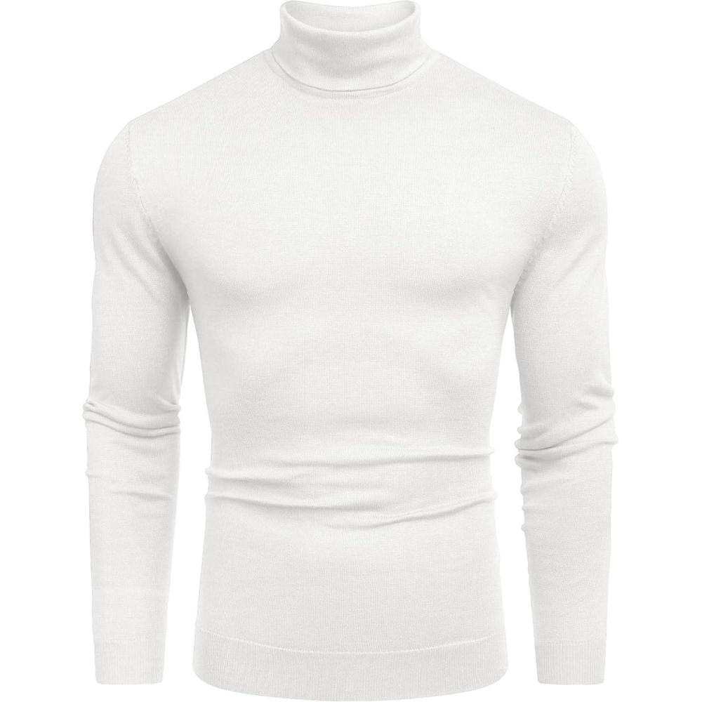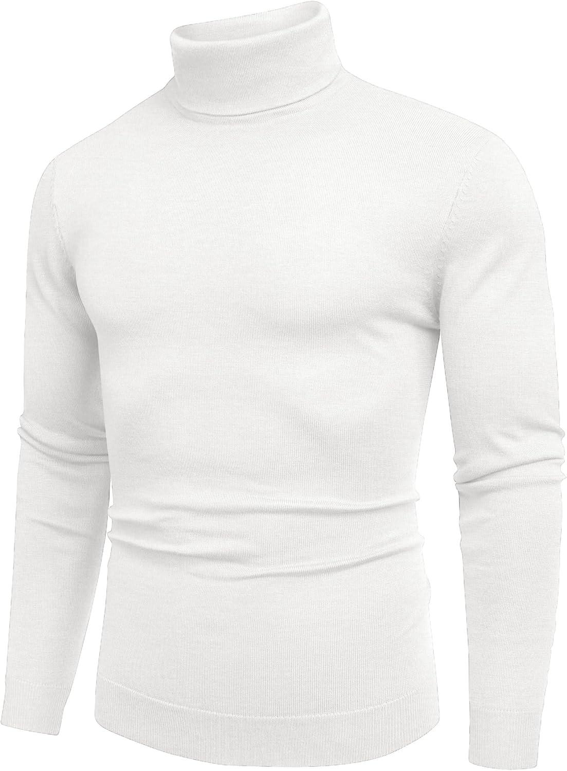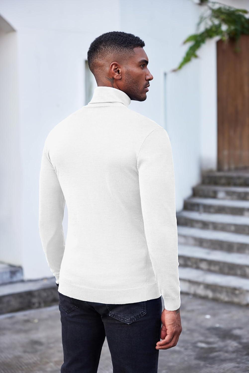 COOFANDY Men's Slim Fit Turtleneck Sweater Casual Basic Knitted Long Sleeve Pullover Sweater(White)