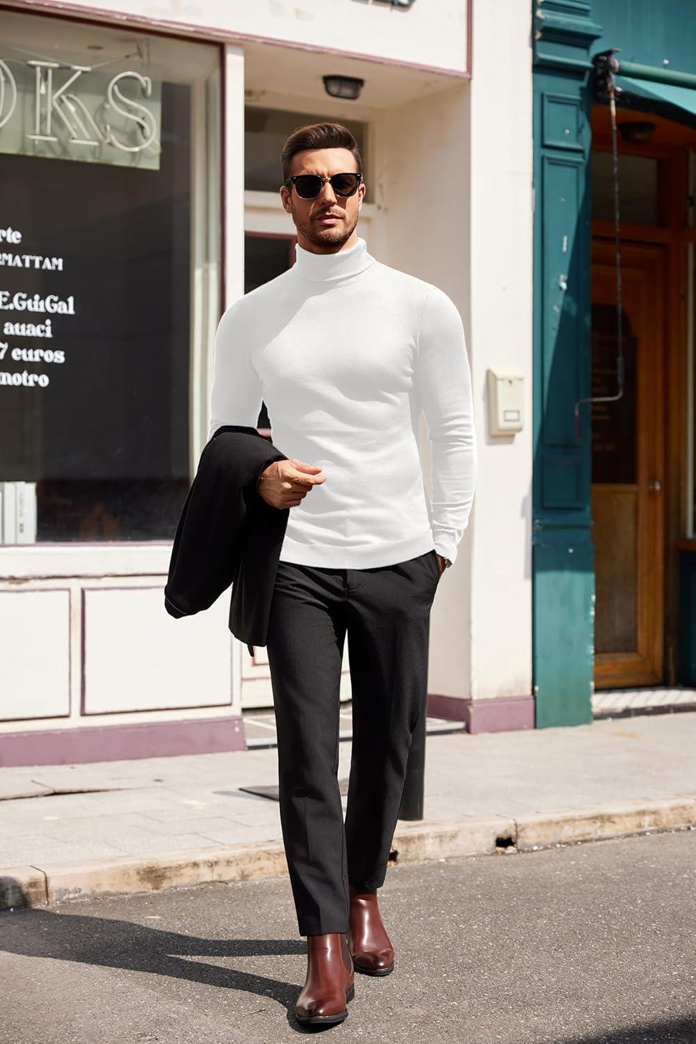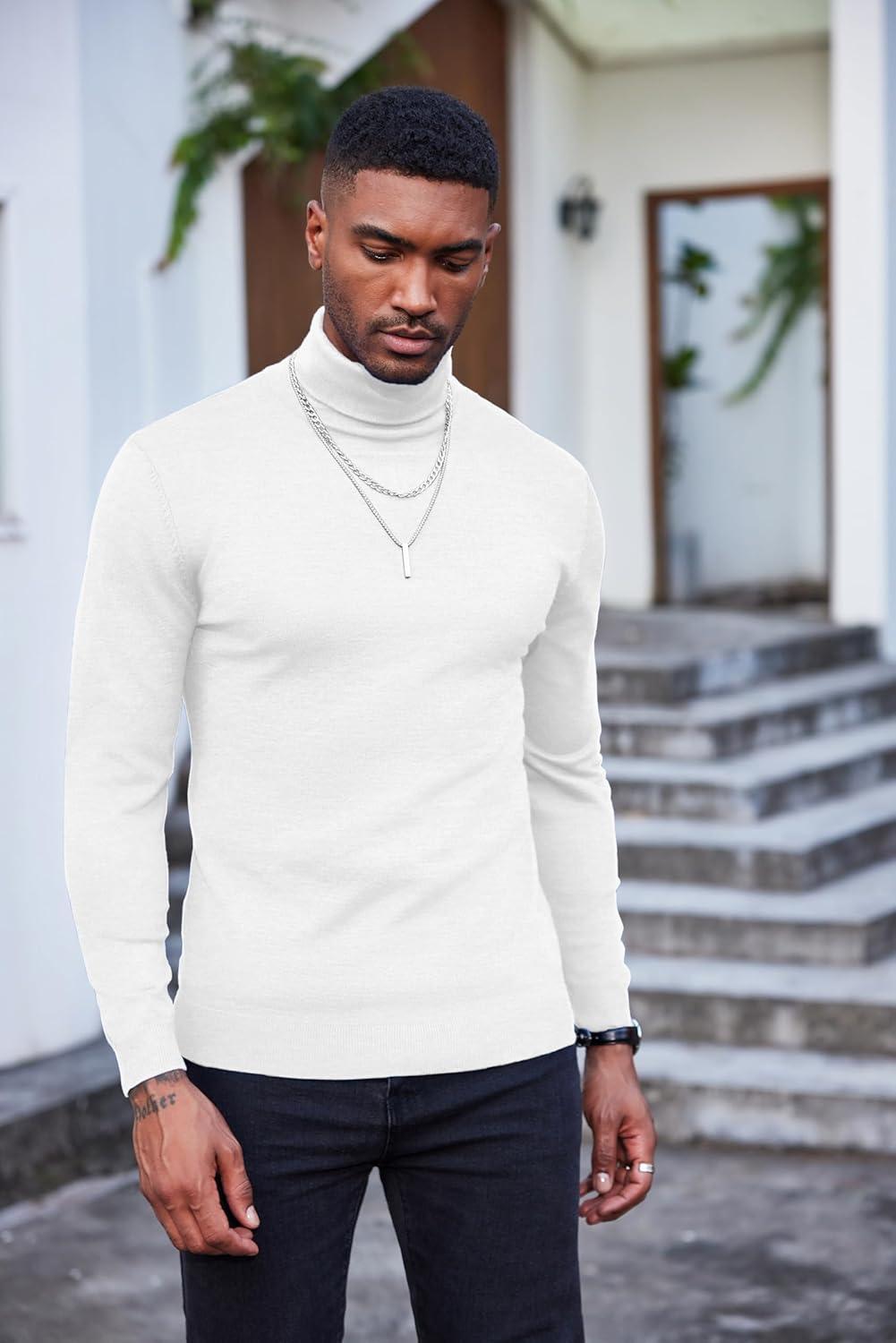 COOFANDY Men’s Slim Fit Turtleneck Sweater Casual Basic Knitted Long Sleeve Pullover Sweater(White)