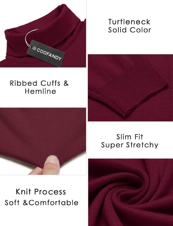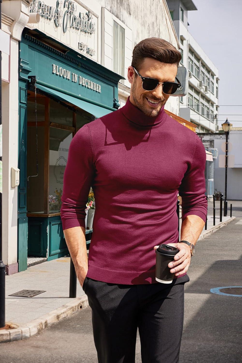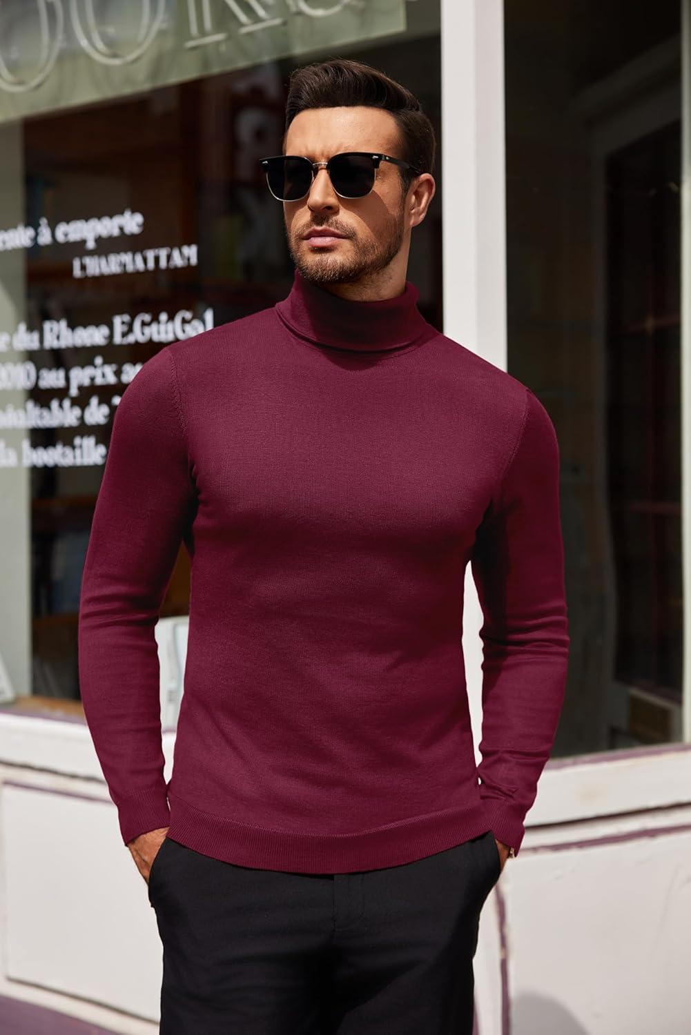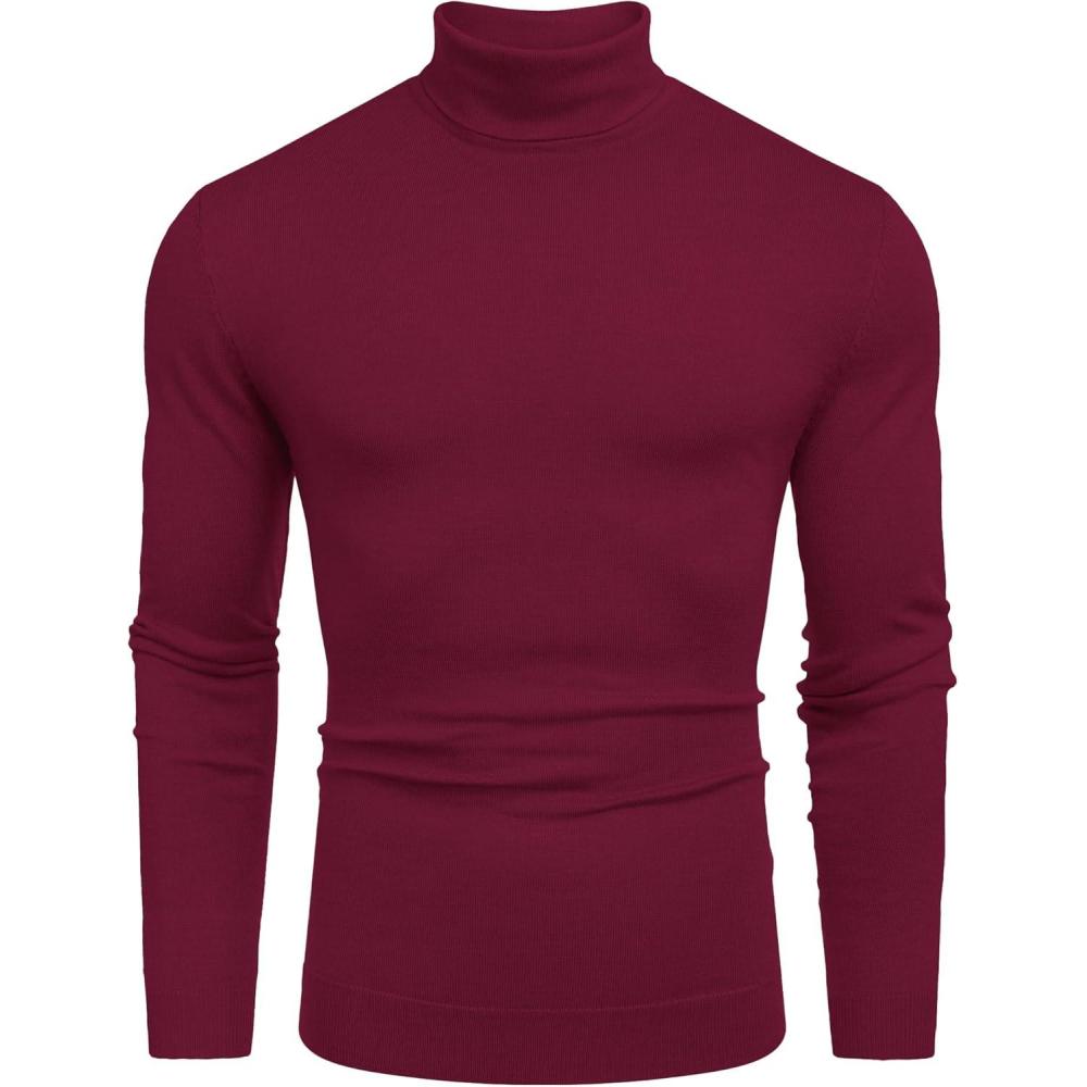 COOFANDY Men's Slim Fit Turtleneck Sweater Casual Basic Knitted Long Sleeve Pullover Sweater(Wine Red)