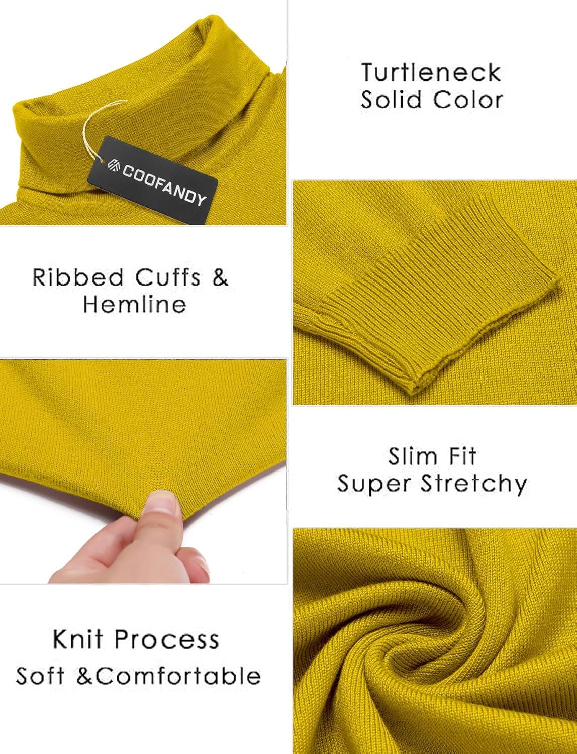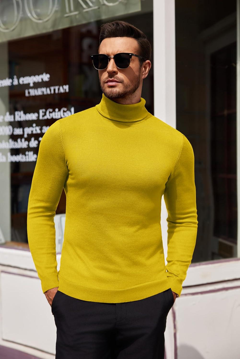 COOFANDY Men's Slim Fit Turtleneck Sweater Casual Basic Knitted Long Sleeve Pullover Sweater(Yellow)