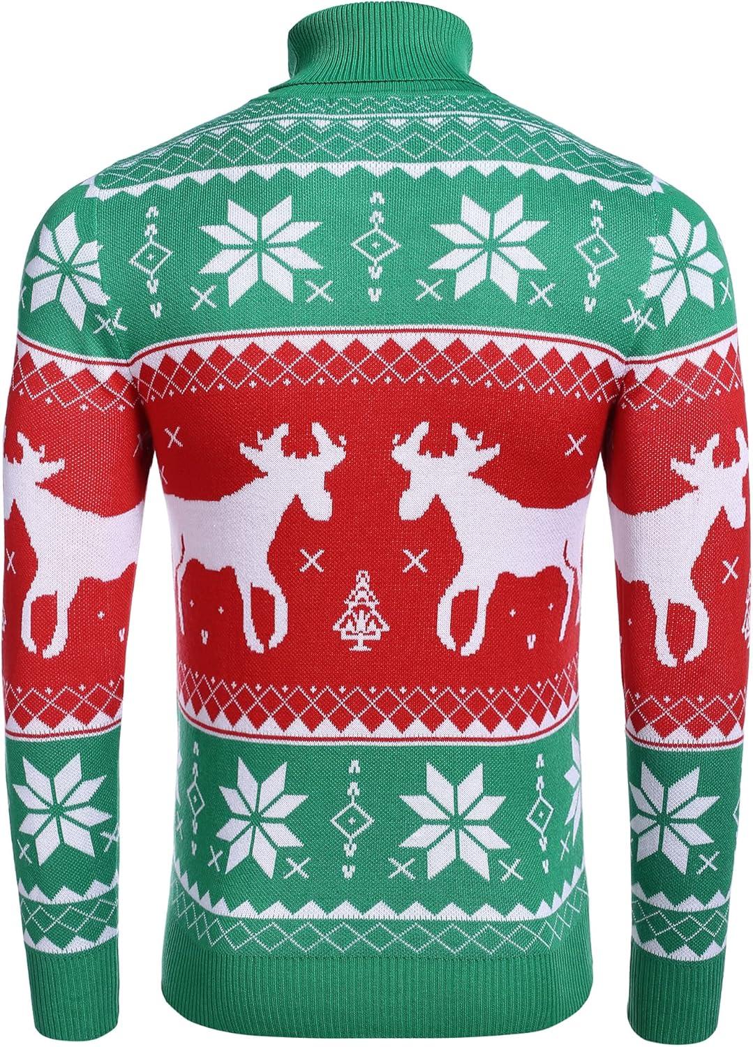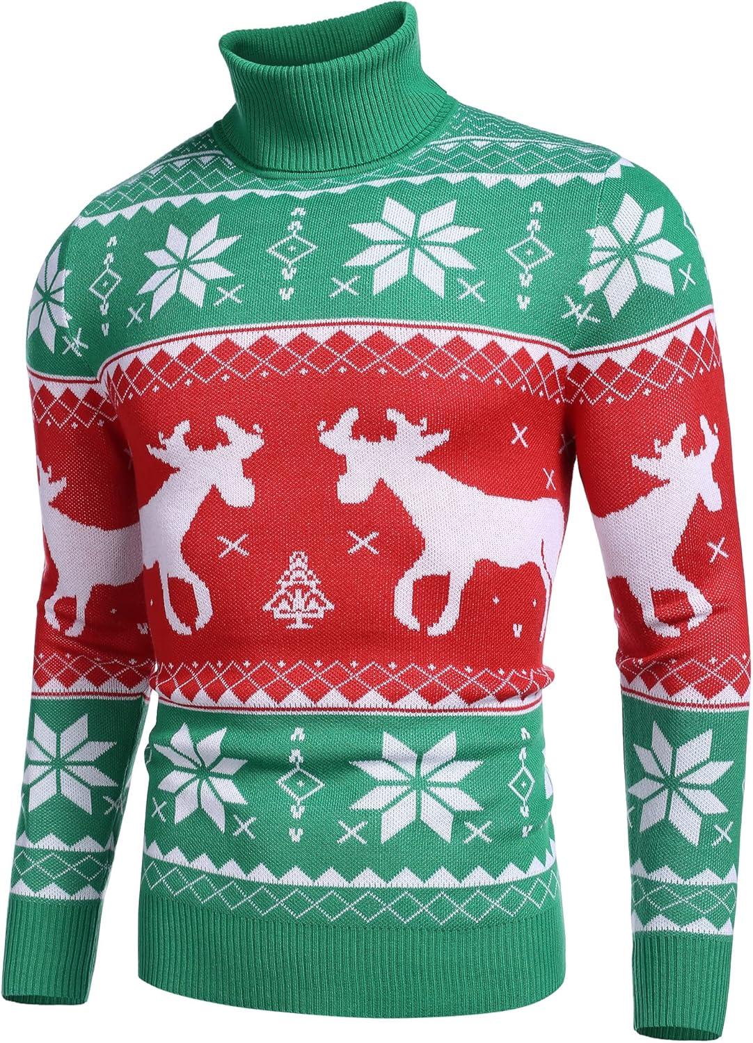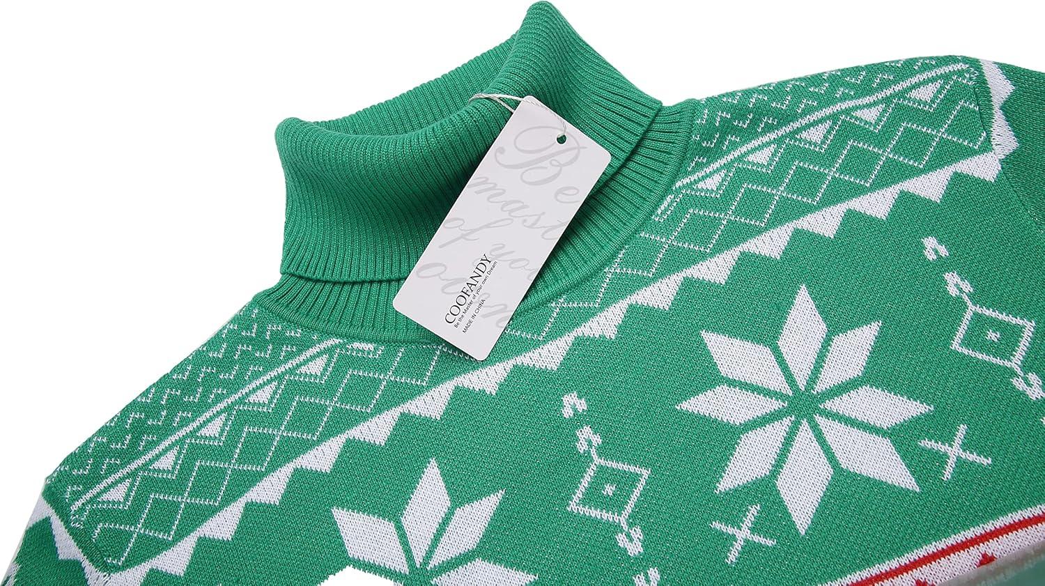 COOFANDY Men's Slim Fit Turtleneck Sweater Casual Knitted Twisted Pullover Solid Sweaters(Christmas Green)