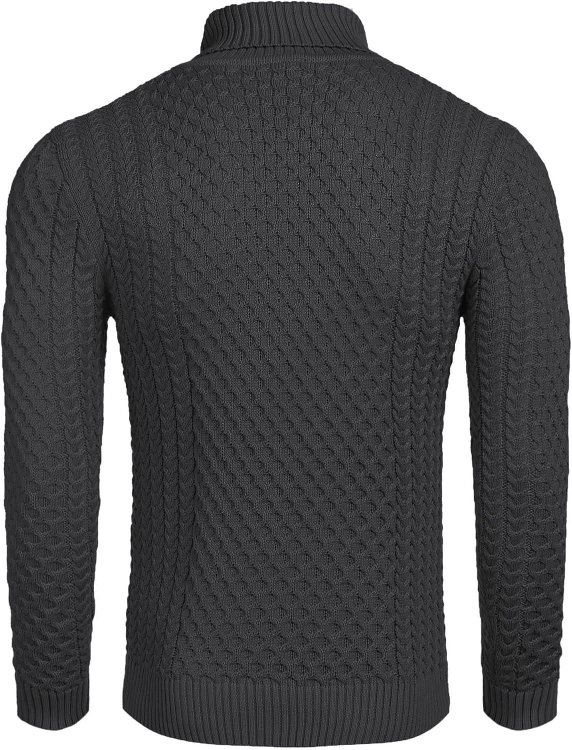 COOFANDY Men’s Slim Fit Turtleneck Sweater Casual Knitted Twisted Pullover Solid Sweaters(Dark Gray)