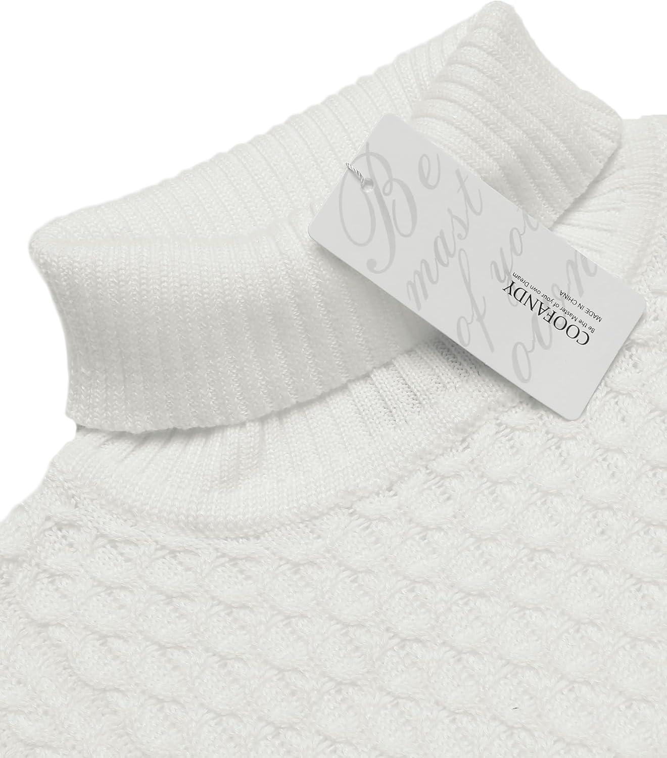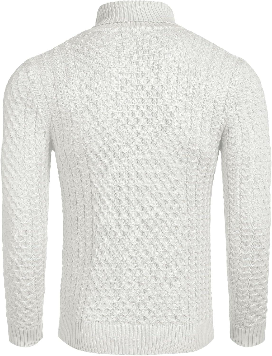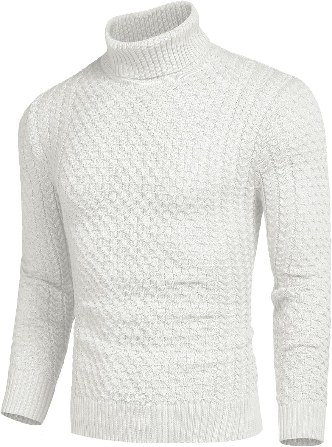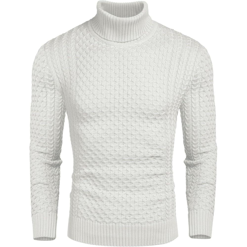 COOFANDY Men's Slim Fit Turtleneck Sweater Casual Knitted Twisted Pullover Solid Sweaters(White)