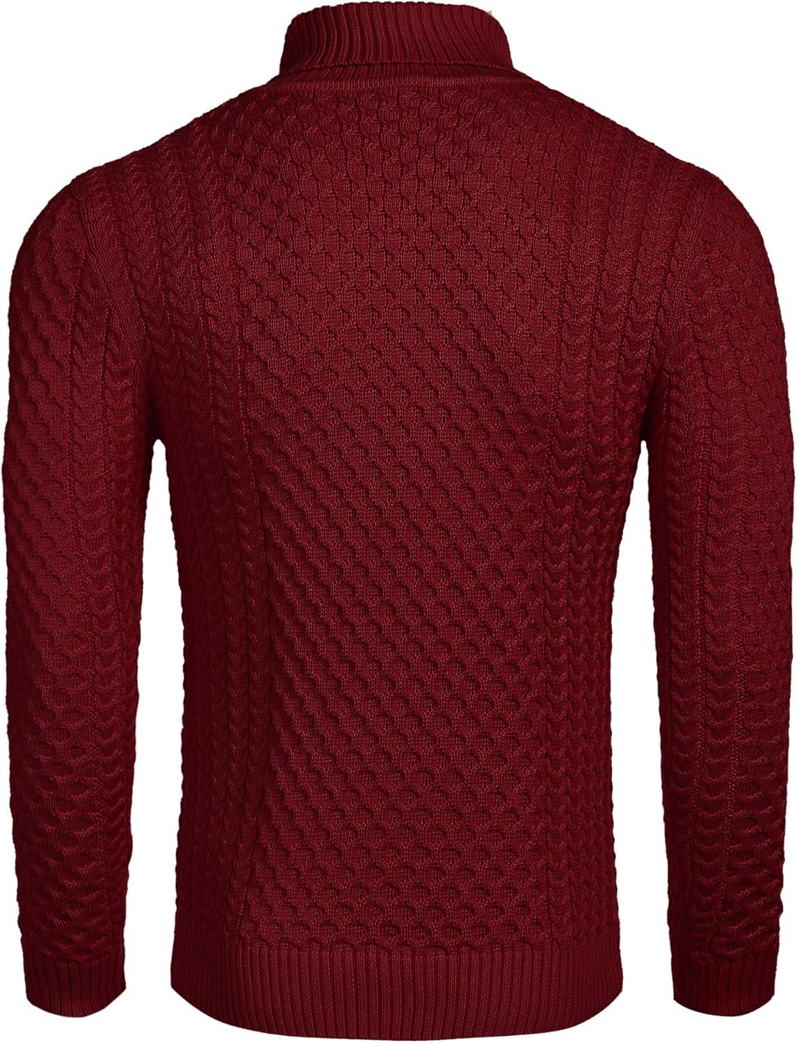 COOFANDY Men's Slim Fit Turtleneck Sweater Casual Knitted Twisted Pullover Solid Sweaters(Wine Red)