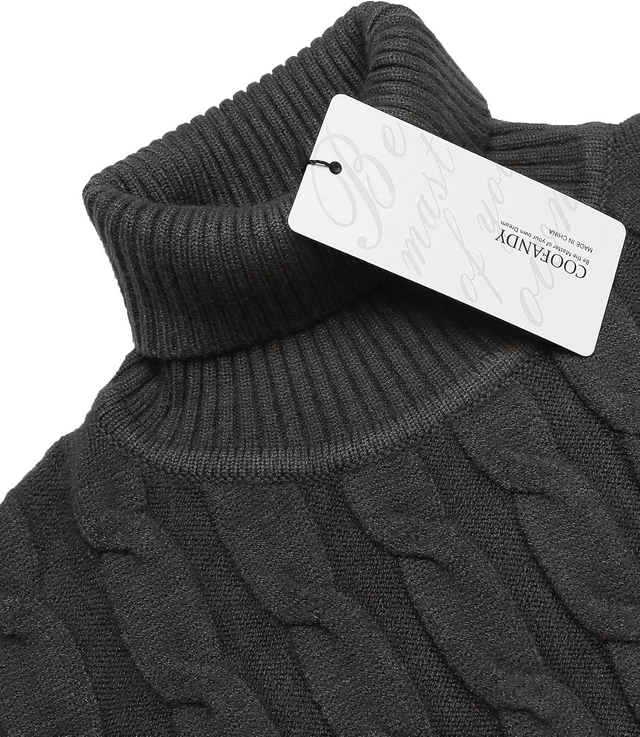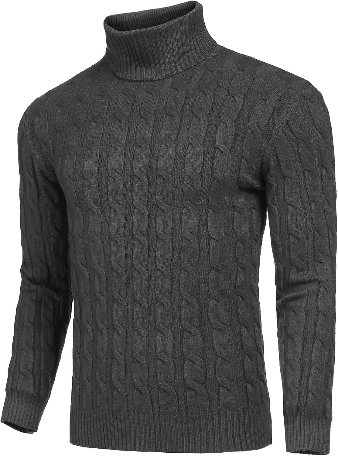 COOFANDY Men's Slim Fit Turtleneck Sweater Casual Twisted Knitted Pullover Sweaters(Charcoal Grey)