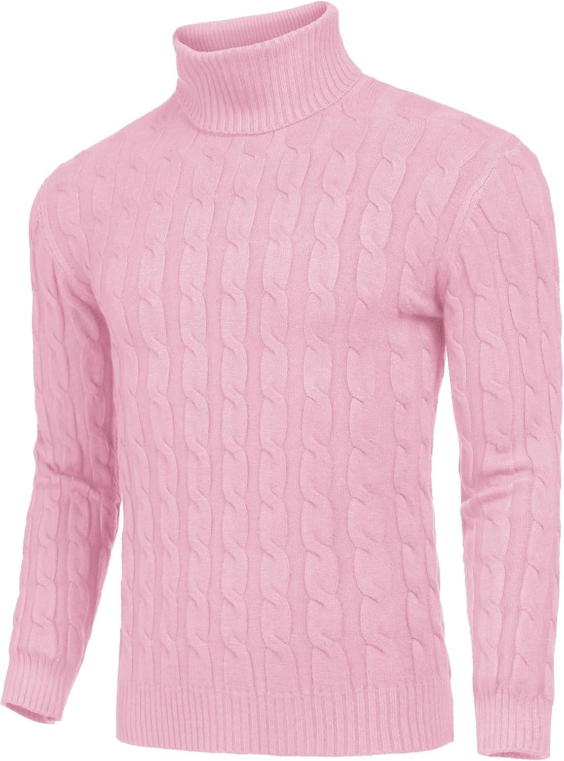 COOFANDY Men’s Slim Fit Turtleneck Sweater Casual Twisted Knitted Pullover Sweaters(Light Pink)