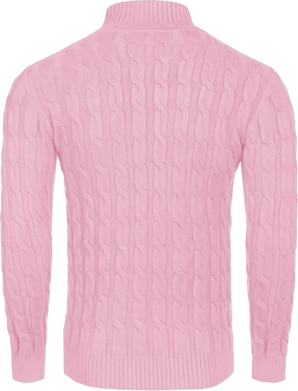 COOFANDY Men's Slim Fit Turtleneck Sweater Casual Twisted Knitted Pullover Sweaters(Light Pink)