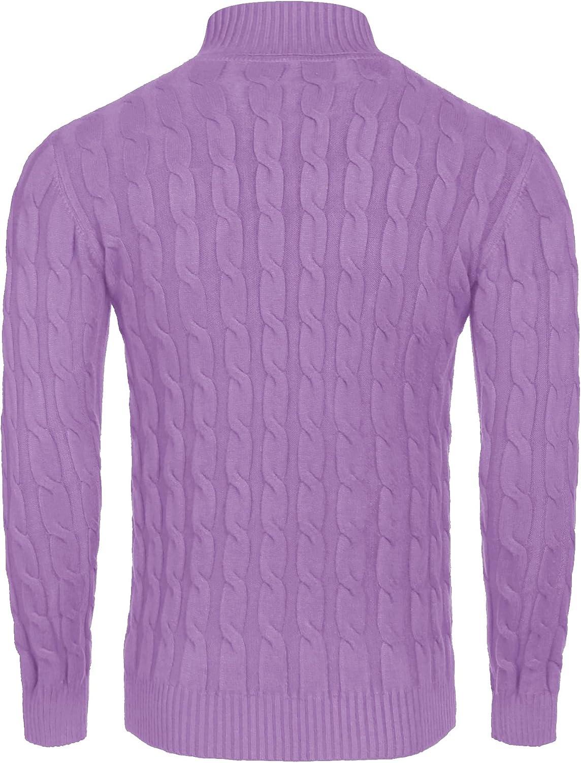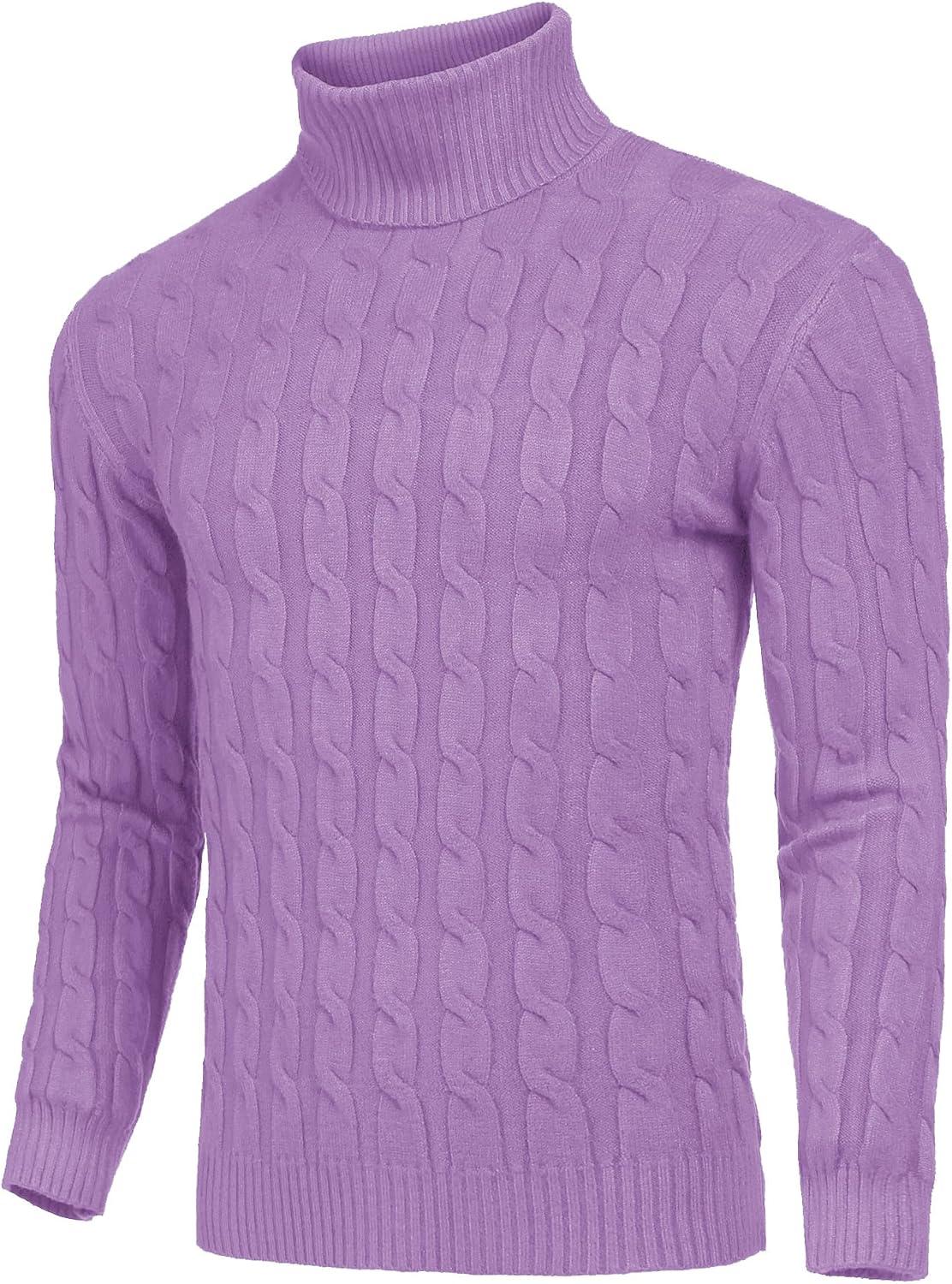 COOFANDY Men's Slim Fit Turtleneck Sweater Casual Twisted Knitted Pullover Sweaters(Light Purple)