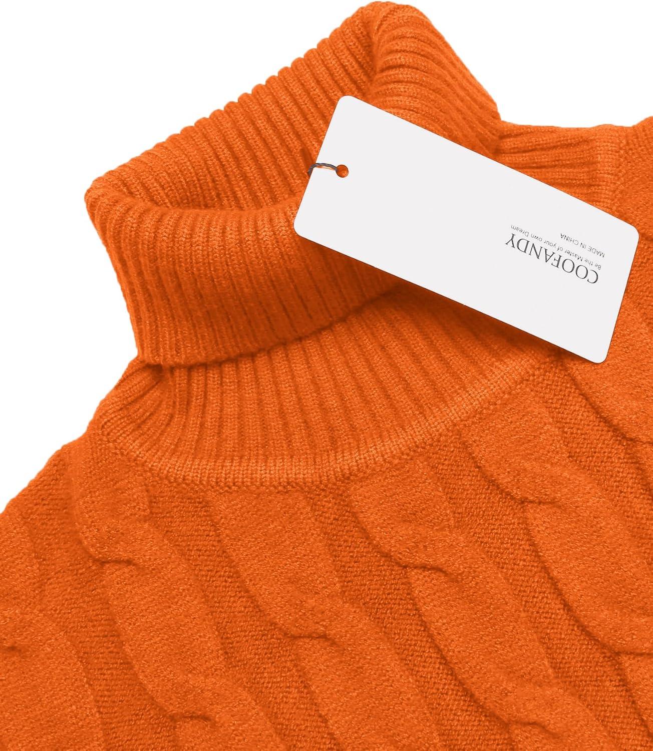 COOFANDY Men’s Slim Fit Turtleneck Sweater Casual Twisted Knitted Pullover Sweaters(Orange)