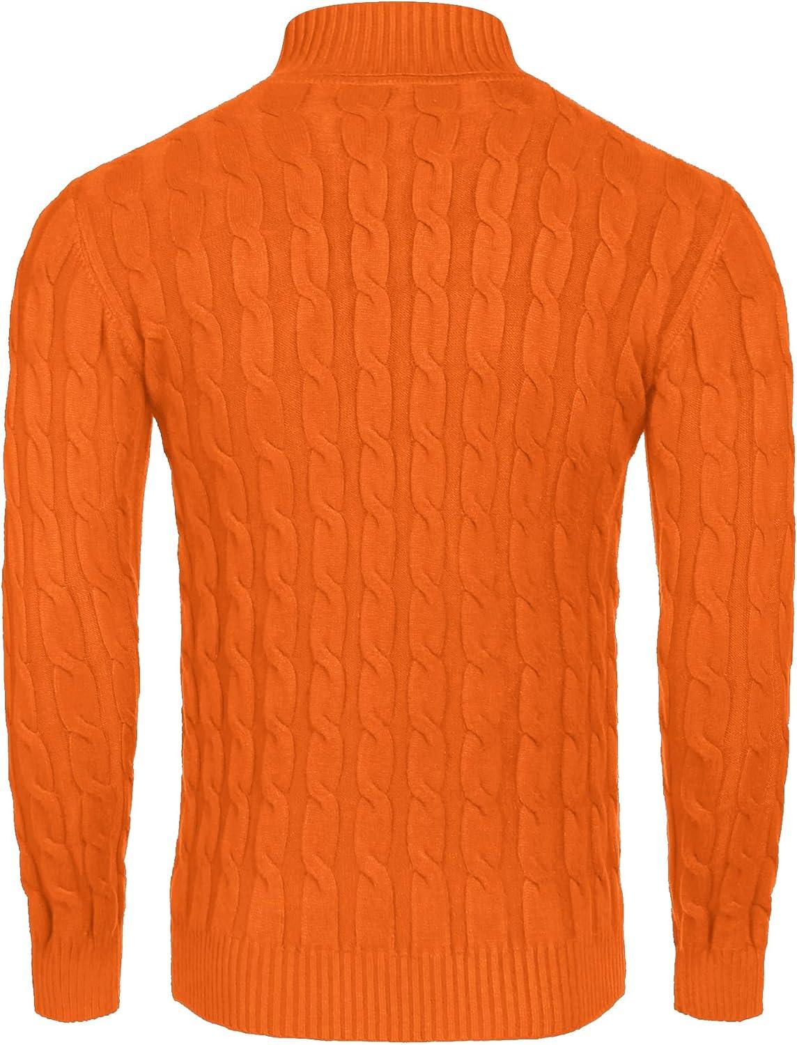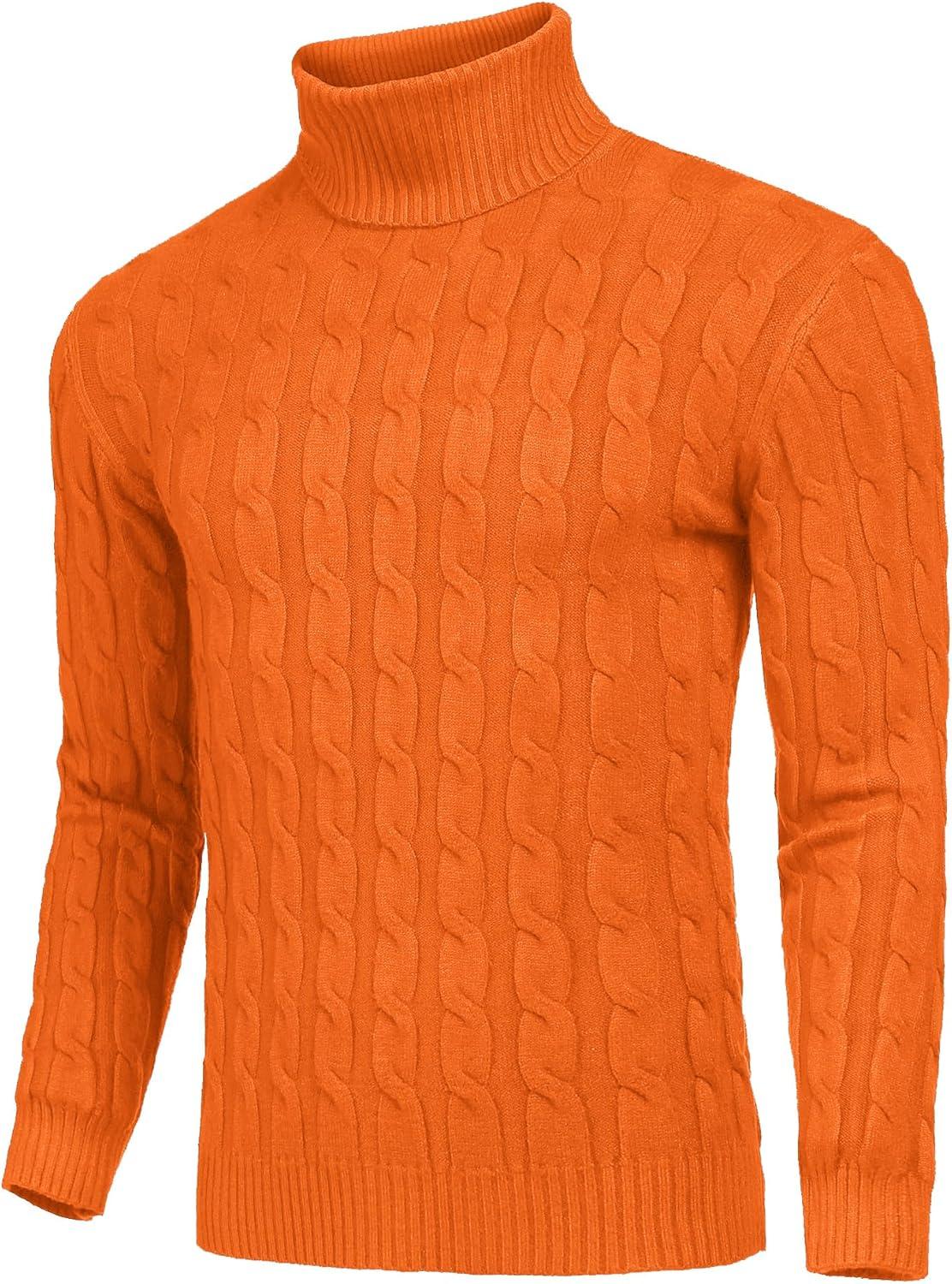 COOFANDY Men's Slim Fit Turtleneck Sweater Casual Twisted Knitted Pullover Sweaters(Orange)