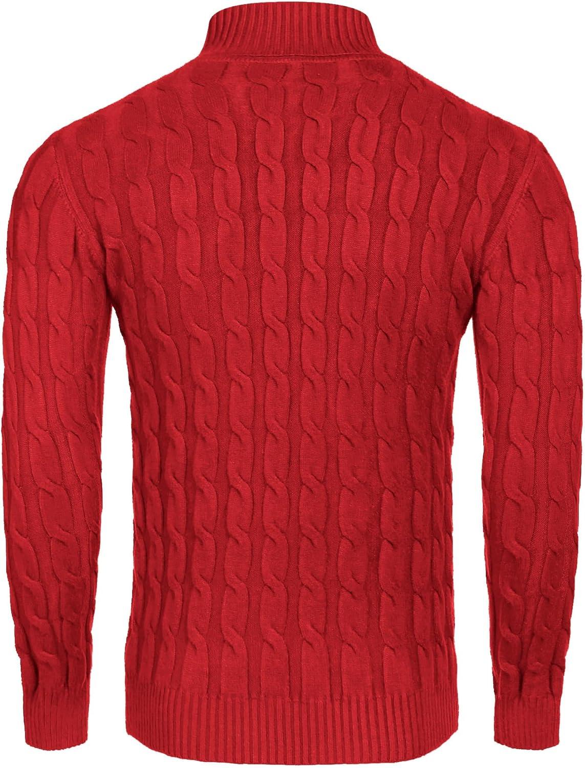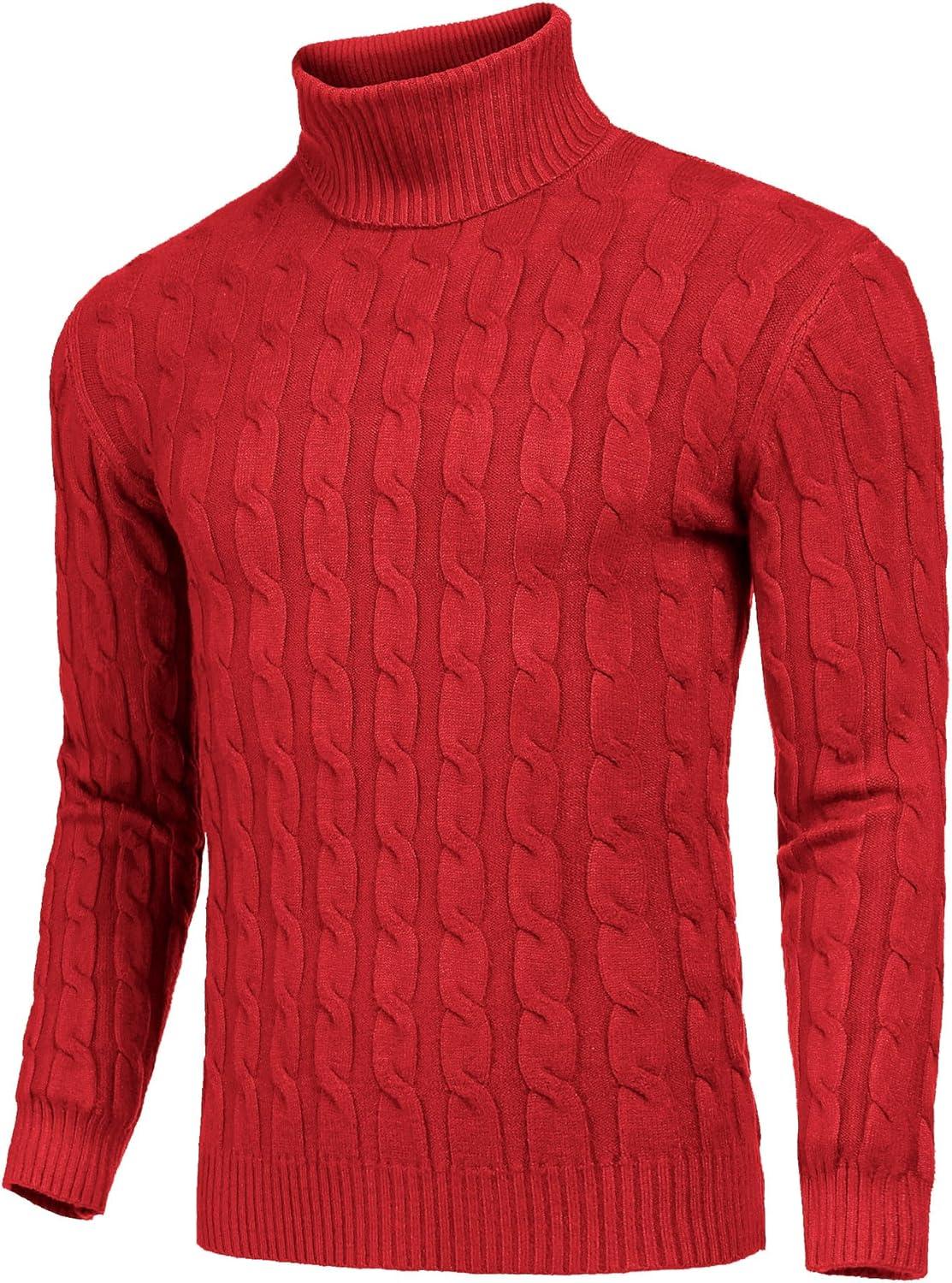 COOFANDY Men's Slim Fit Turtleneck Sweater Casual Twisted Knitted Pullover Sweaters(Red)
