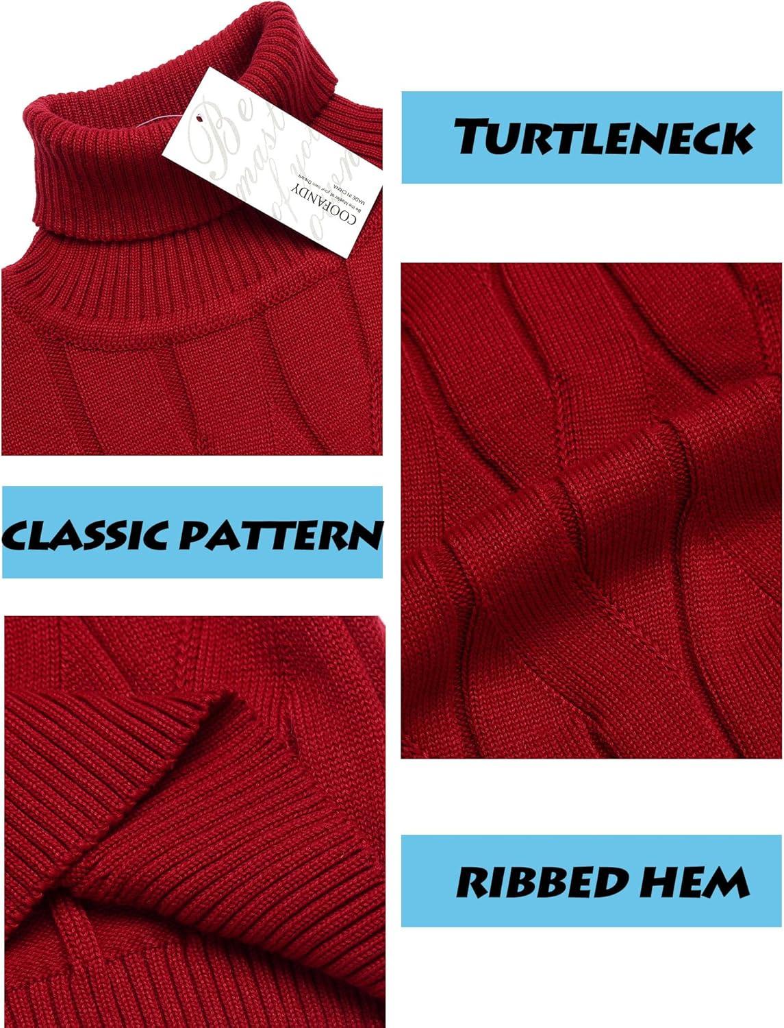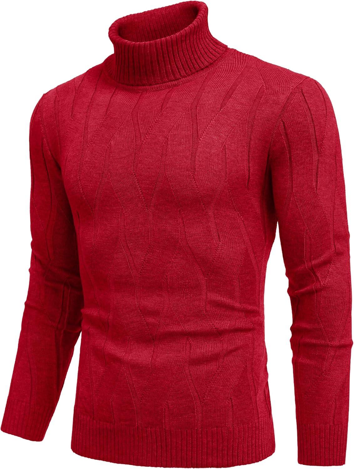 COOFANDY Men's Slim Fit Turtleneck Sweater Long Sleeve Casual Knitted Pullover Sweaters(01-red)