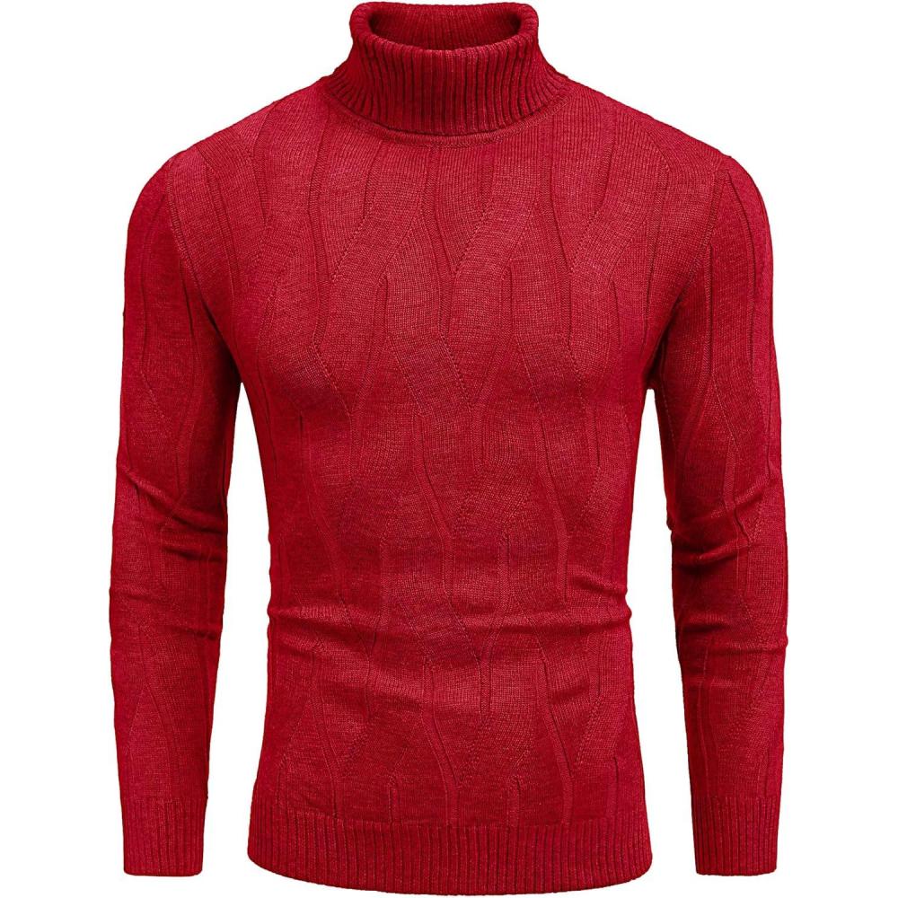 COOFANDY Men’s Slim Fit Turtleneck Sweater Long Sleeve Casual Knitted Pullover Sweaters(01-red)