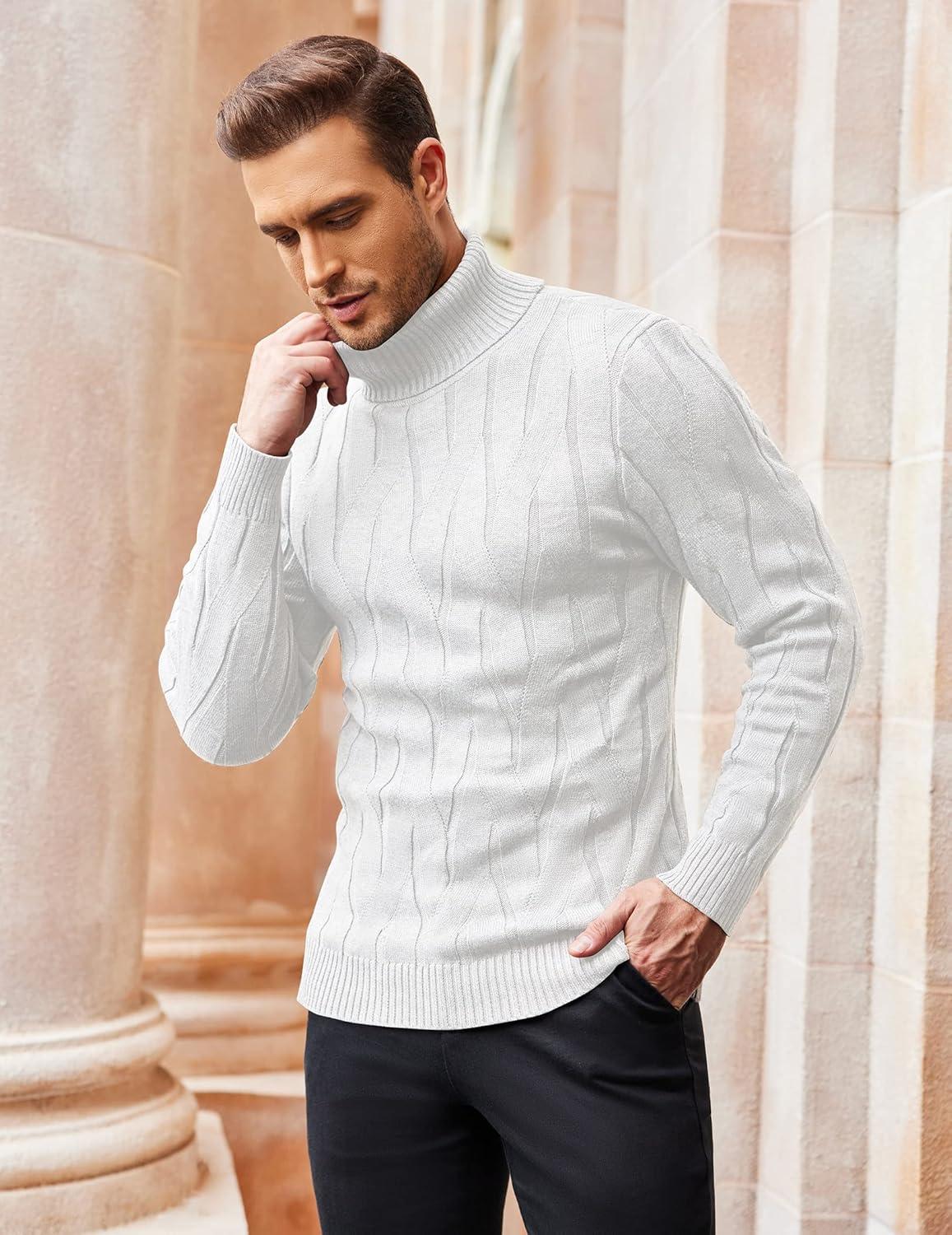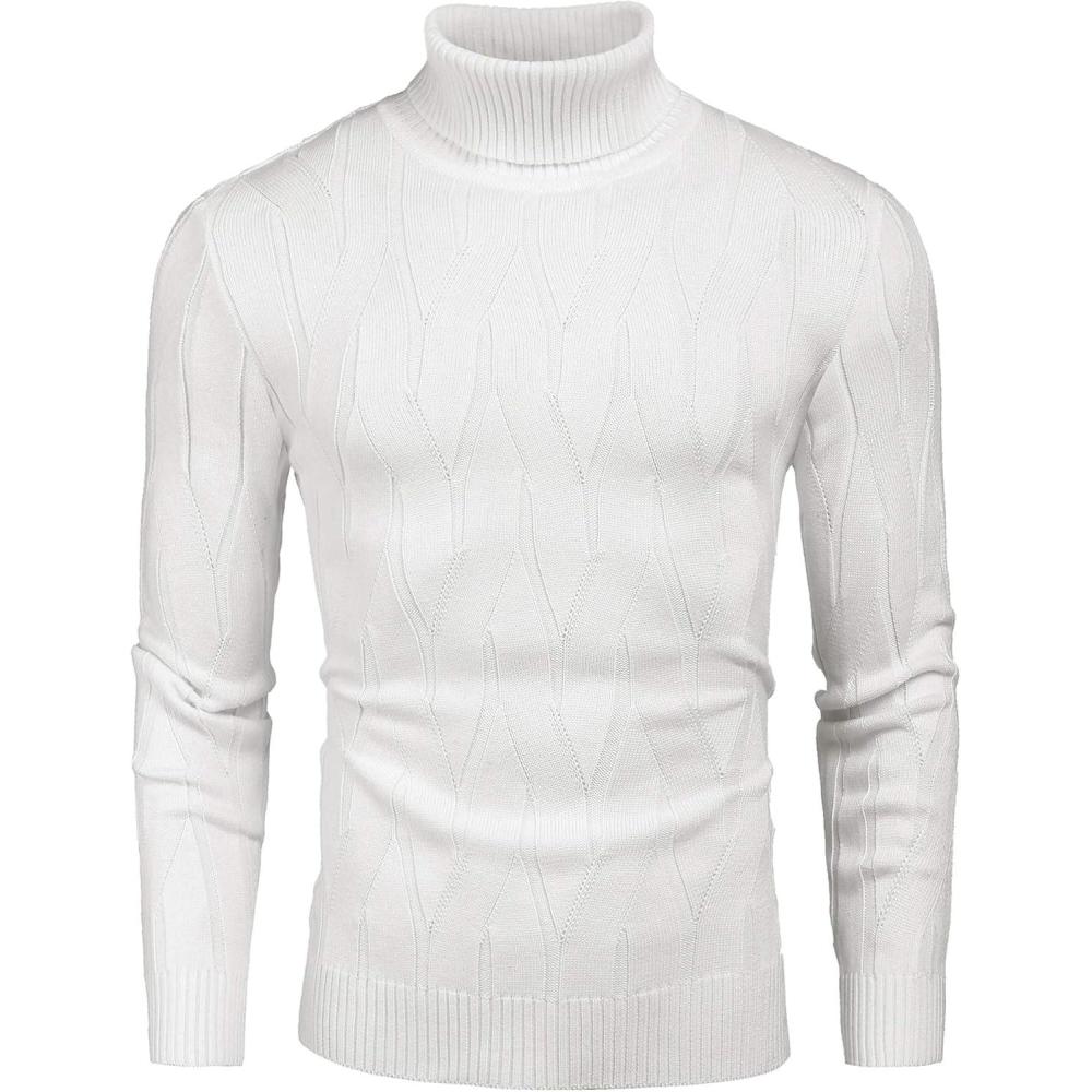 COOFANDY Men's Slim Fit Turtleneck Sweater Long Sleeve Casual Knitted Pullover Sweaters(White)