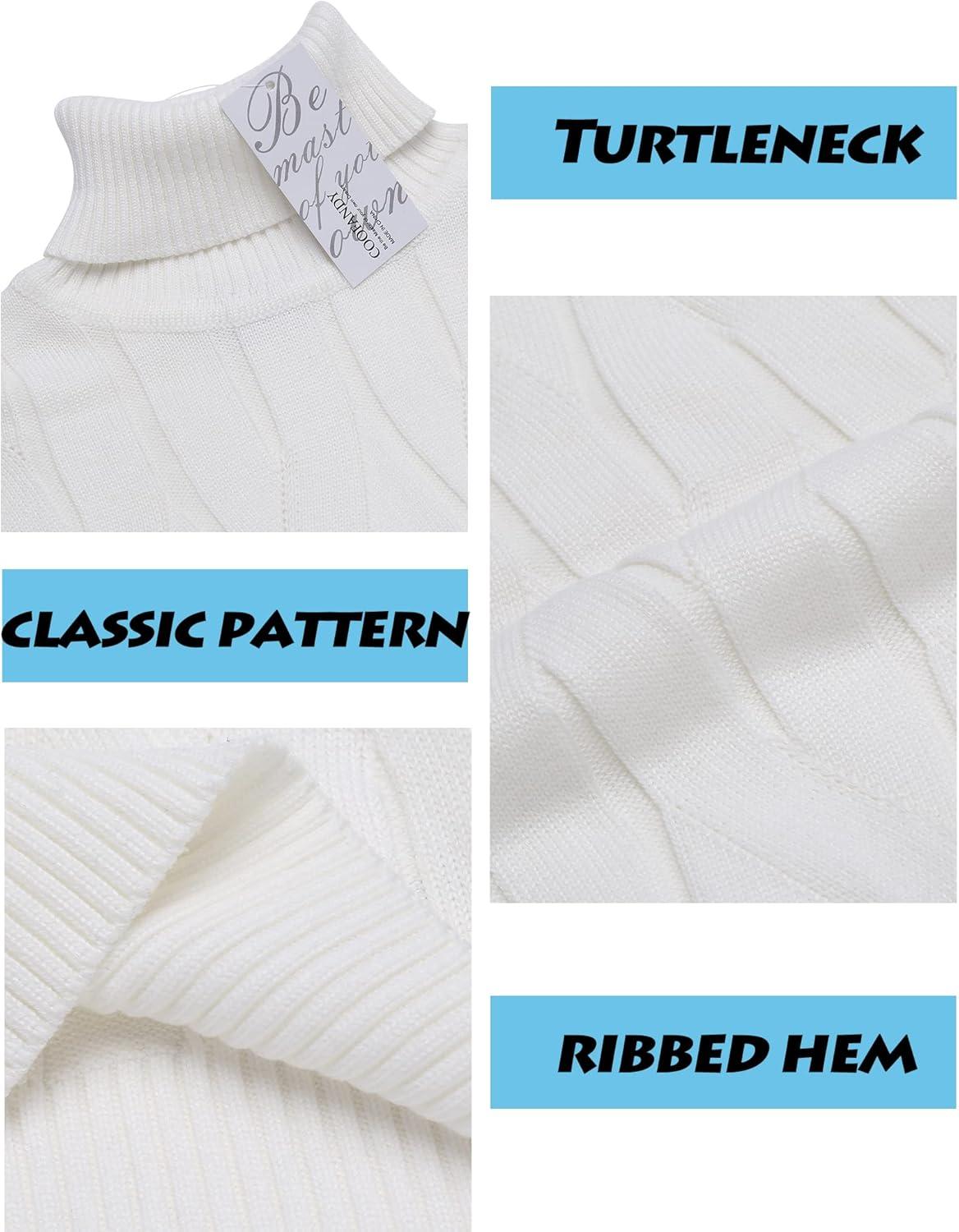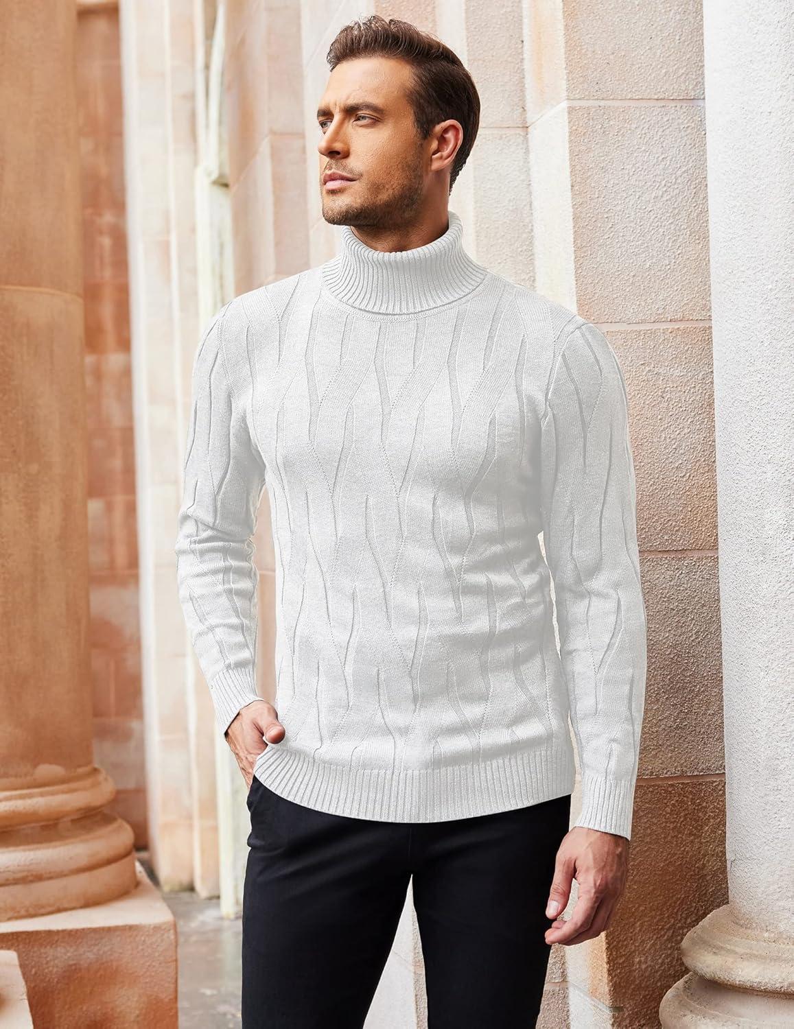 COOFANDY Men’s Slim Fit Turtleneck Sweater Long Sleeve Casual Knitted Pullover Sweaters(White)