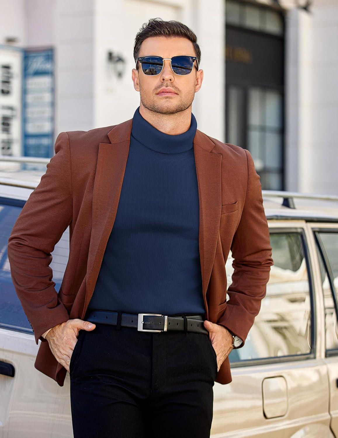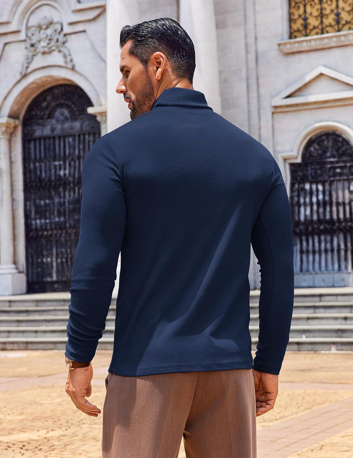 COOFANDY Men’s Slim Fit Turtleneck Sweater Long Sleeve Ribbed Turtle Neck Casual Lightweight Basic Pullover Sweaters(Blue)