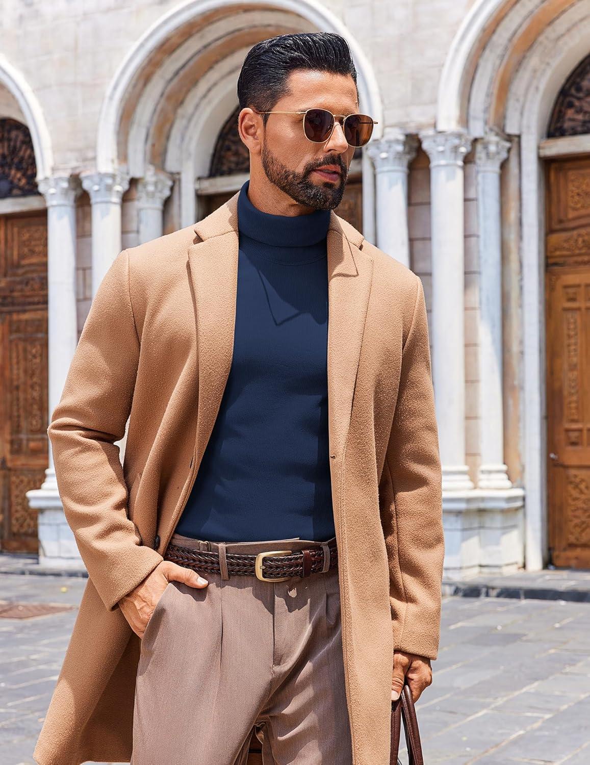 COOFANDY Men’s Slim Fit Turtleneck Sweater Long Sleeve Ribbed Turtle Neck Casual Lightweight Basic Pullover Sweaters(Brown)